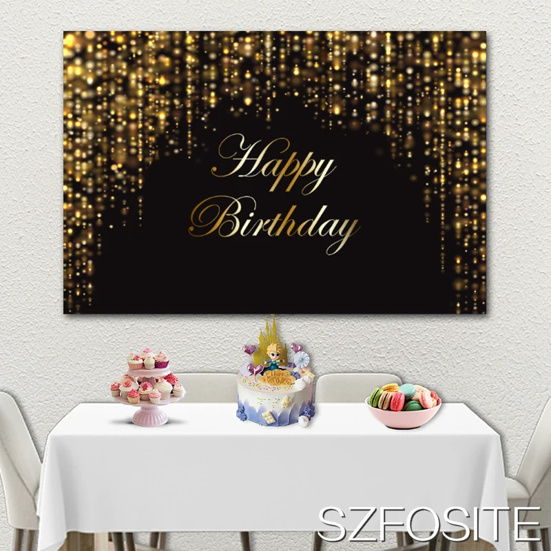 Фон для фотосъемки на день рождения с золотыми блестками, черный, с...