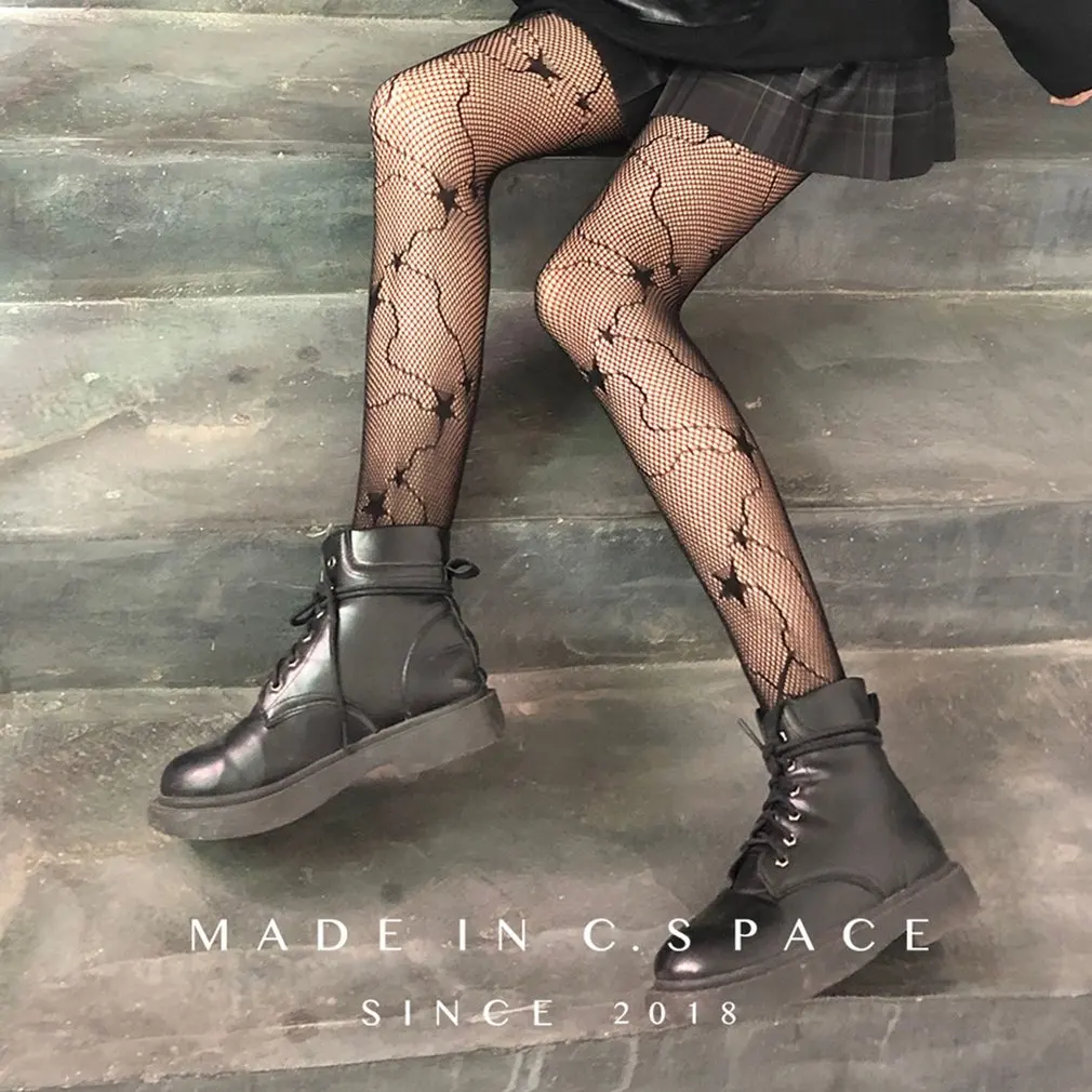 Женские Модные ажурные колготки со звездами, черные ажурные сексуальные сетчатые колготки с сердечками, Колготки с узором в стиле панк, колготки вечерние Ринок и клубов