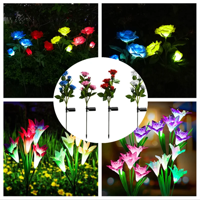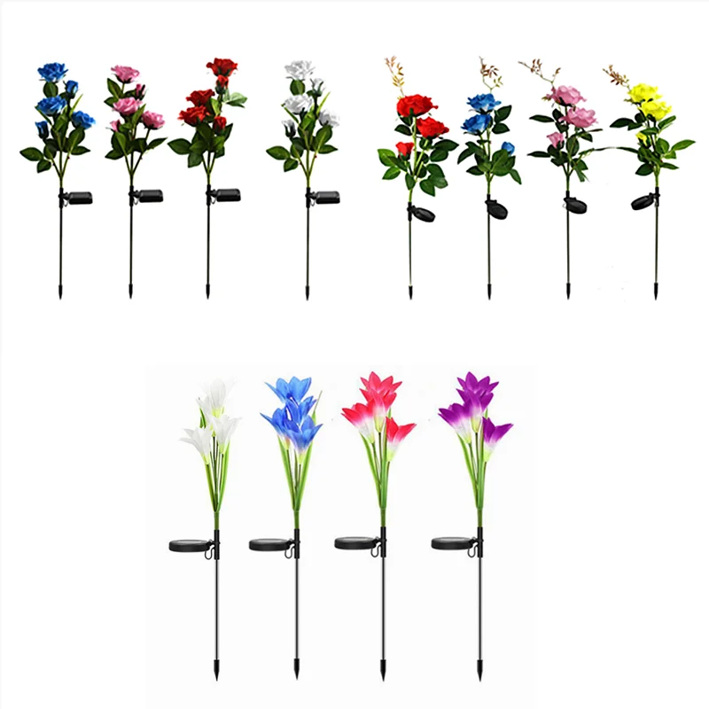 Роза цветок лилии Солнечный СВЕТОДИОДНЫЙ светильник на открытом воздухе украшения сада Водонепроницаемый солнечный светильник на солнечной батарее Мощность газон Светодиодный светильник s уличный светильник