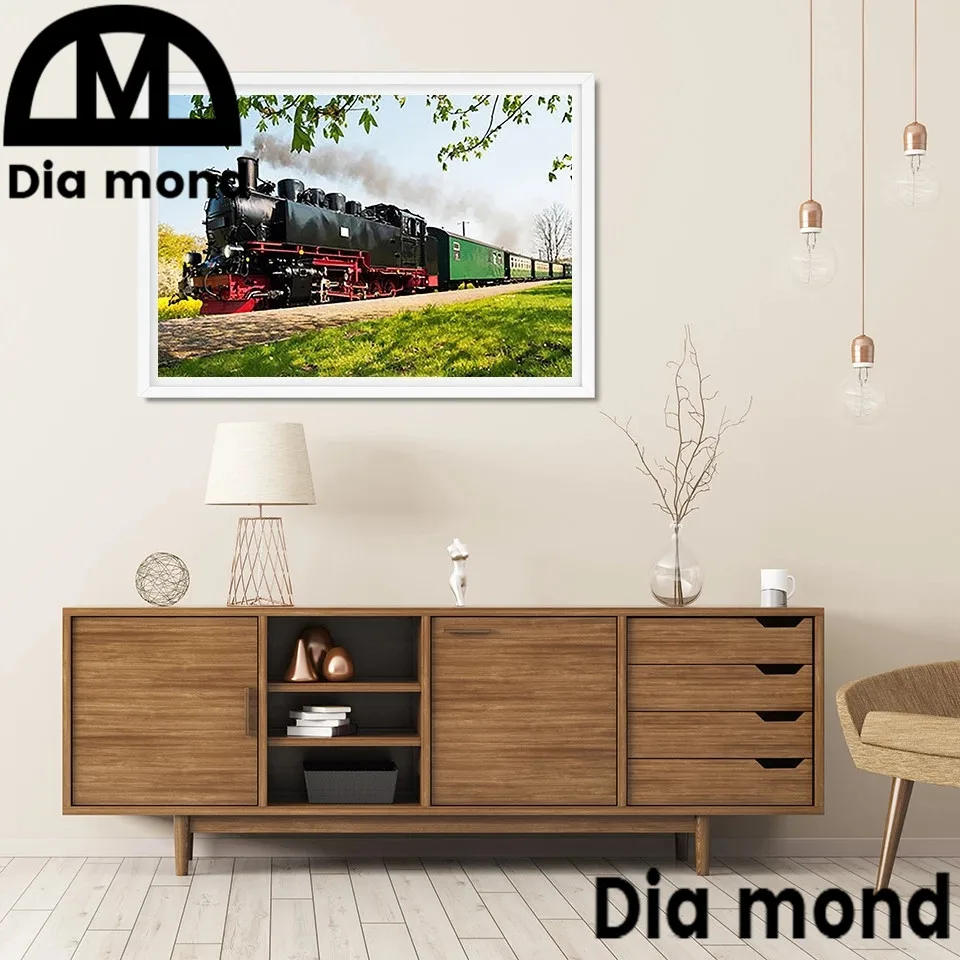 Алмазная вышивка 5D "сделай сам", картина с изображением поезда бисера, мозаика из страз, настенное искусство, зимний пейзаж, вышивка крестом, стразы, домашний декор