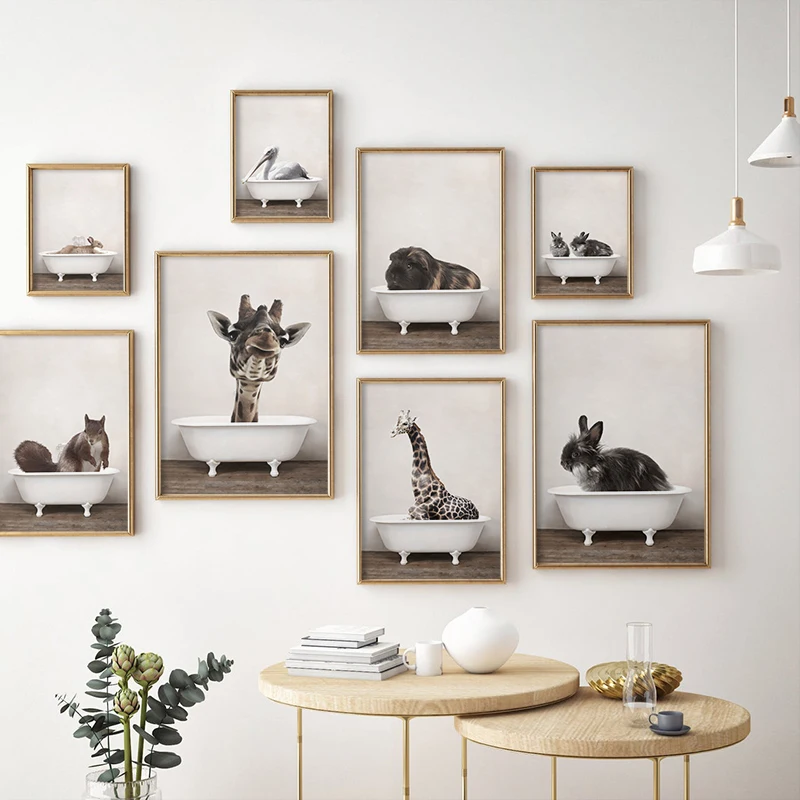 Черно-белый настенный постер с изображением животных для ванной и в...