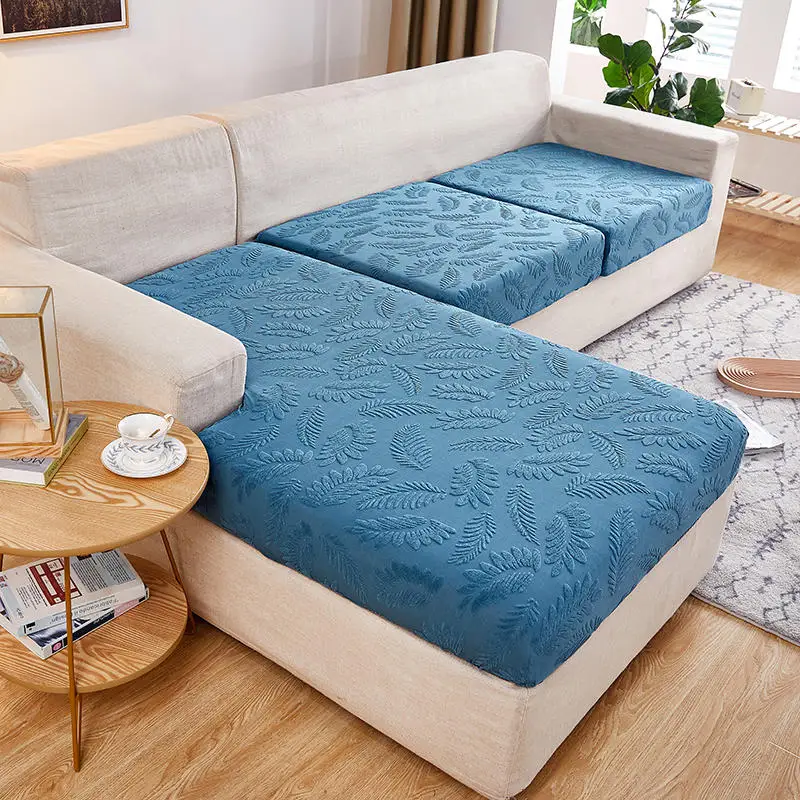 Эластичный жаккардовый чехол для дивана синего цвета