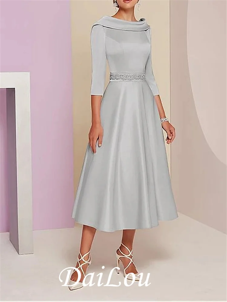 ТРАПЕЦИЕВИДНОЕ платье для матери невесты платье размера плюс элегантные Винтаж Ba Чай u образным вырезом Чай Длина сатин 34 Длина с длинными и короткими рукавами и Бисер 2021