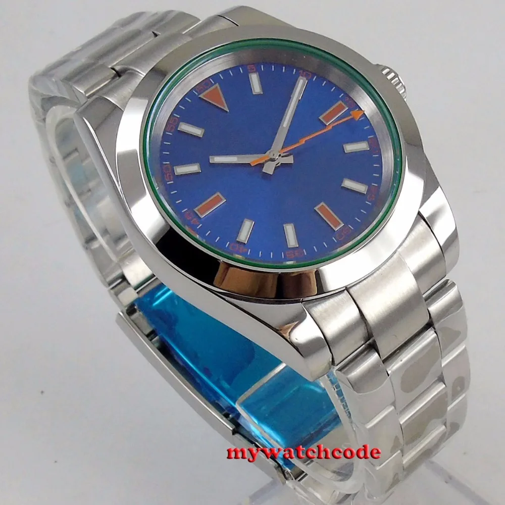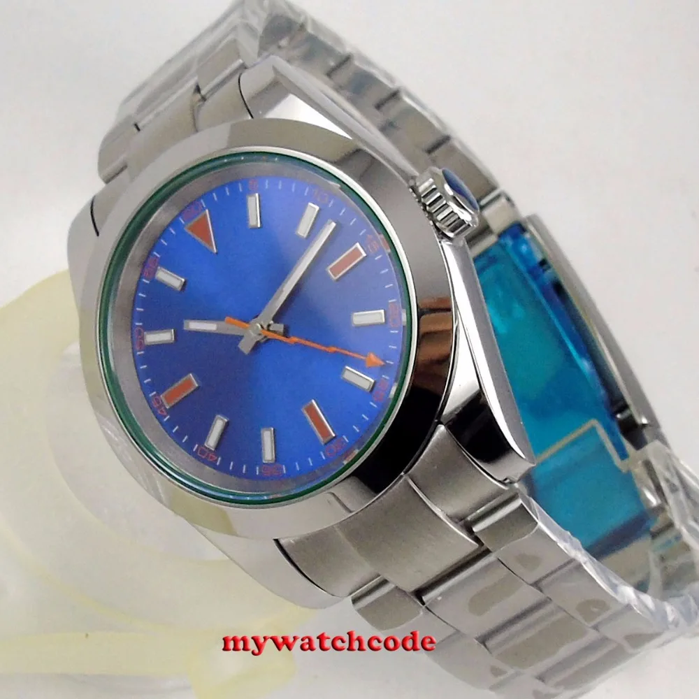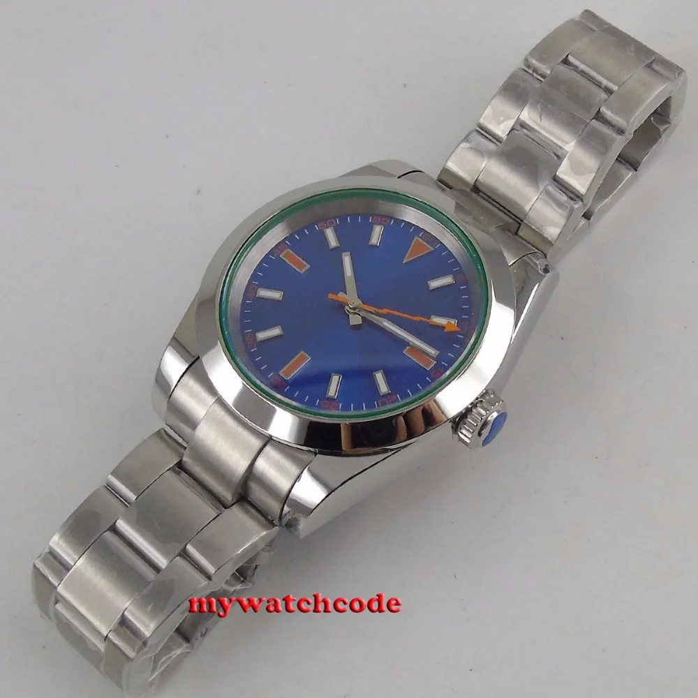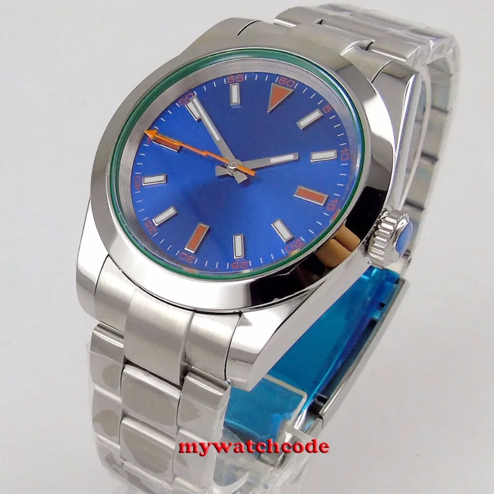 36 мм Bliger стерильный синий циферблат без логотипа Твердый чехол с окошком даты сапфировое стекло 21 Jewels MIYOTA 8215 автоматические мужские часы