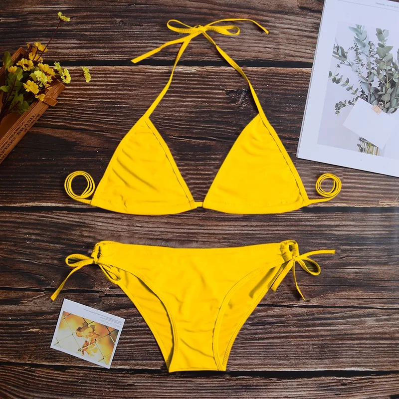 Женский купальник, комплект бикини, сексуальный мини-стринги, пляжный треугольный купальник, однотонный бандажный бразильский купальник, комплекты бикини, 2021