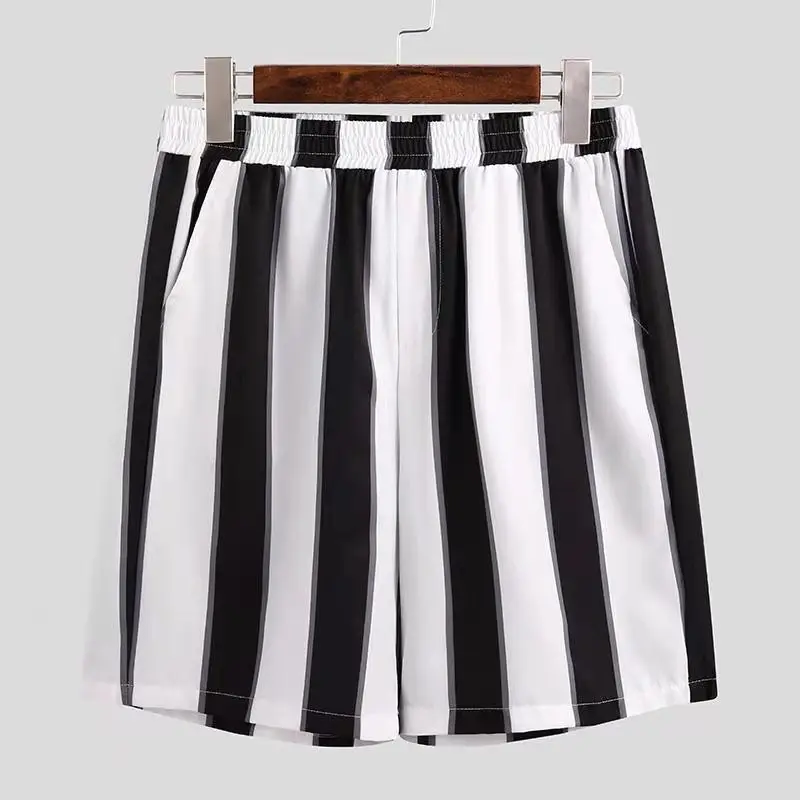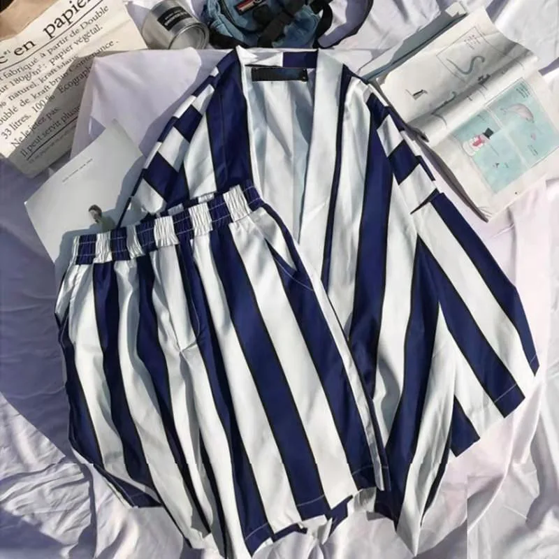 Костюм-кимоно мужской в полоску, Свободный кардиган, рубашка с короткими рукавами, модные пляжные дышащие шорты, Повседневная Уличная одежда, лето