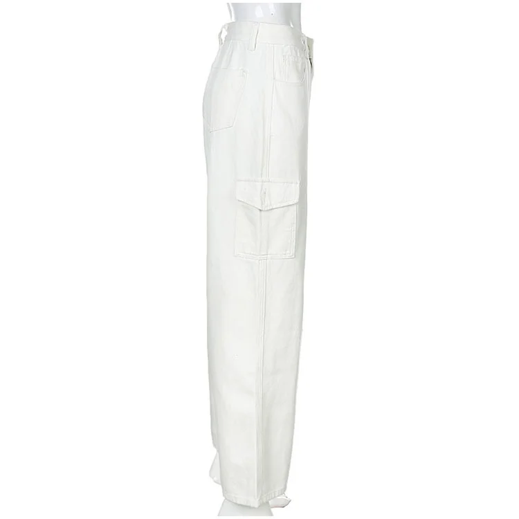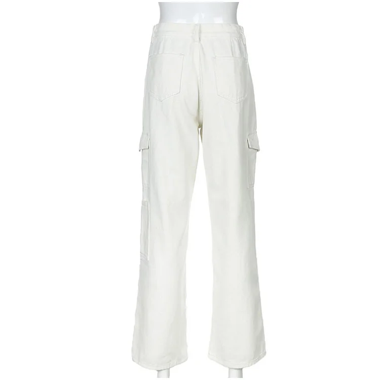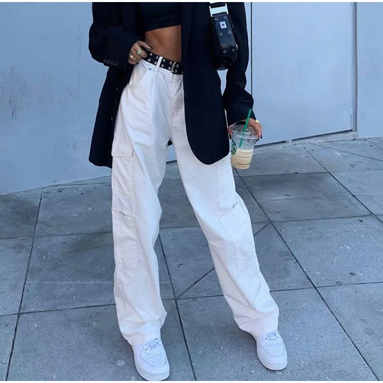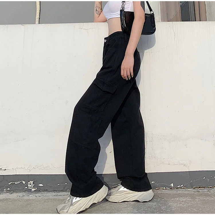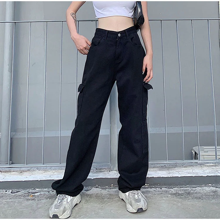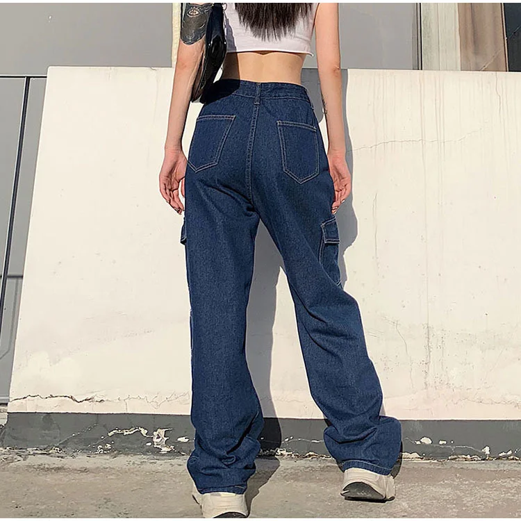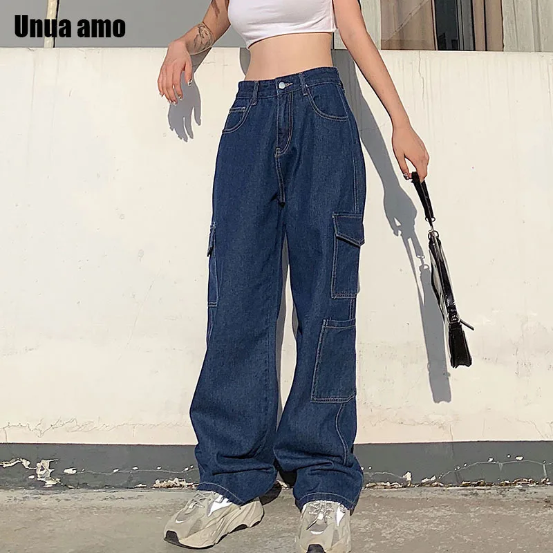 Traf Винтажные женские джинсы с высокой талией, мешковатые джинсы, уличная одежда, брюки-карго со множеством карманов, джинсовые прямые брюки, повседневные сы