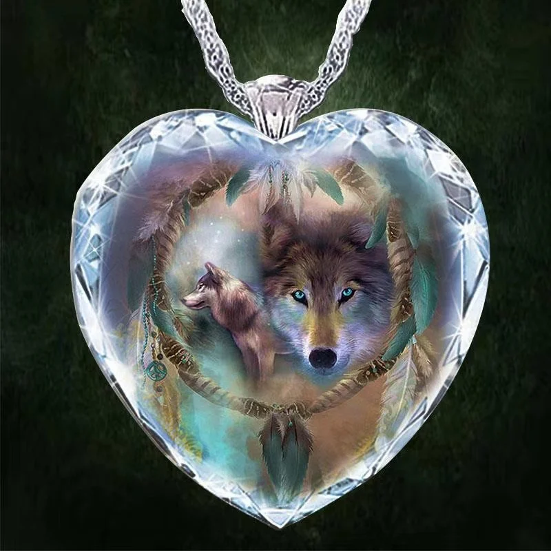 Ожерелье-подвеска в форме сердца из хрустального стекла, волк, тоте...