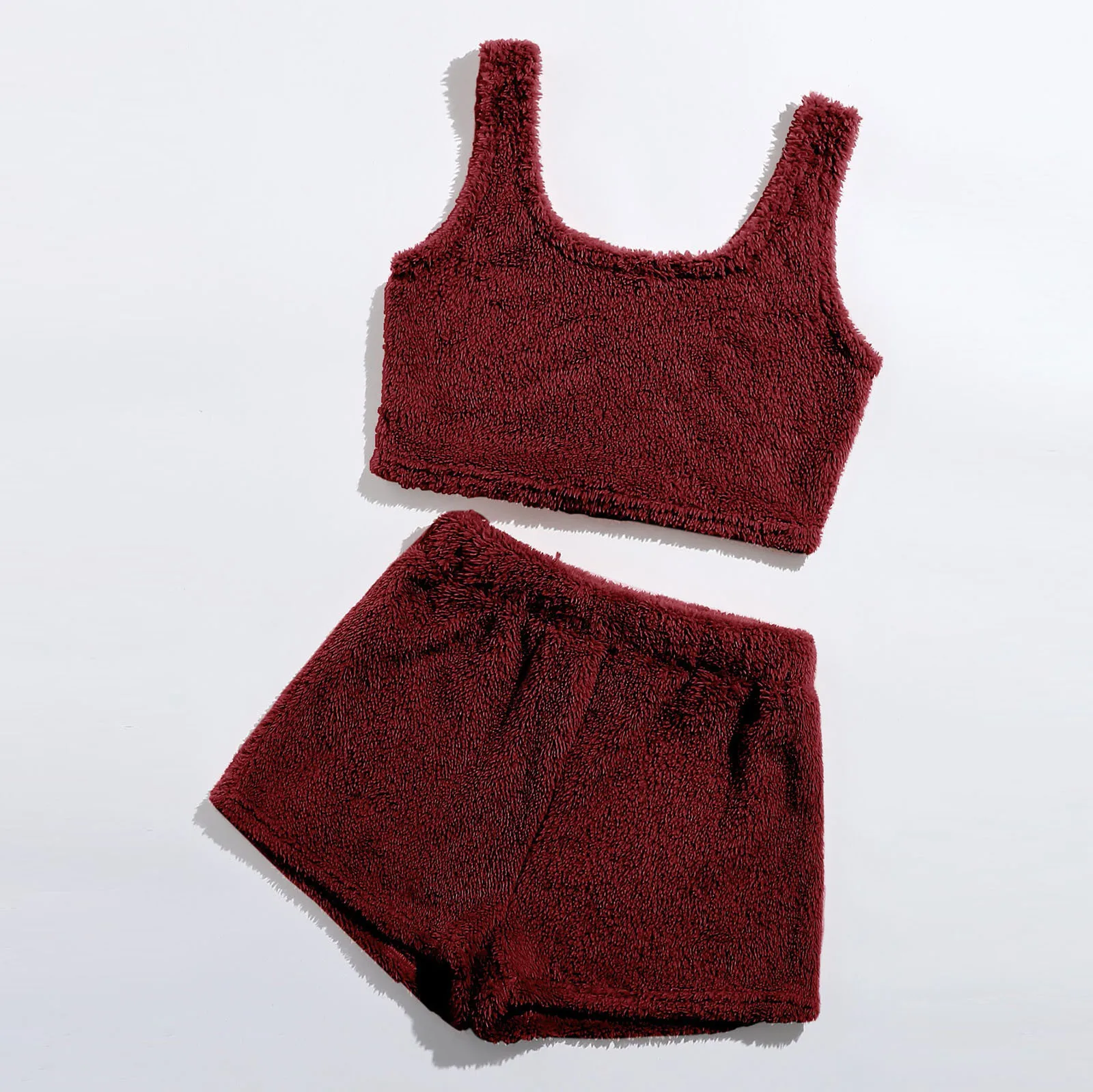 Пижамный комплект Женский, фланелевый топ с круглым вырезом и шорты