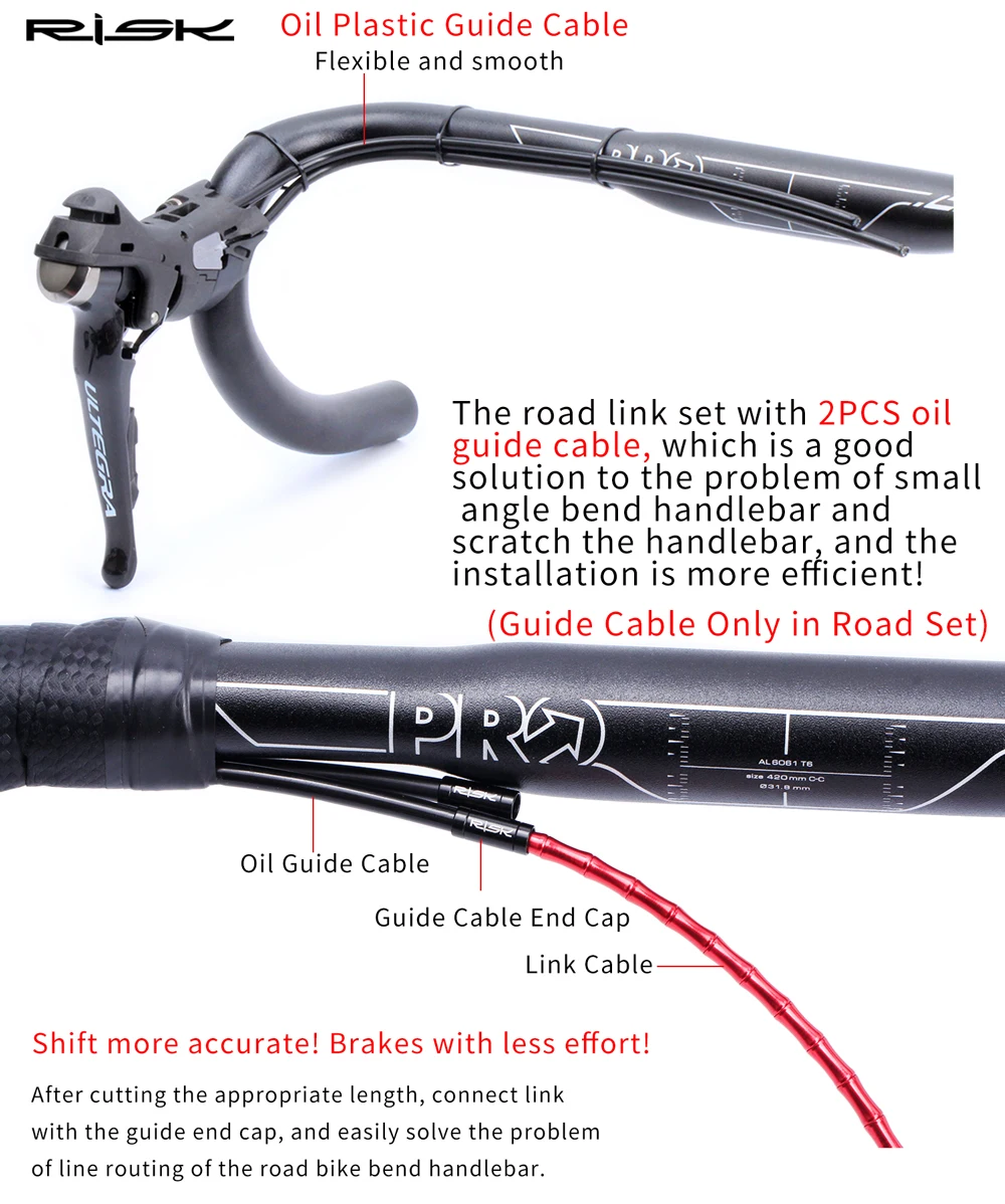 Маслопластиковый направляющий кабель гибкий и гладкий набор дорожных звеньев с 2 шт. направляющий кабель для масла, что является хорошим решением проблемы малого размера. Угол изгиба руля и поцарапать руль, и установка более эффективна! (Направляющий кабель только в дорожном комплекте) маслопроводный кабель направляющий кабель соединительный кабель более точный! Тормоза с меньшим усилием! После резки соответствующей длины, подключите ссылку к концевой крышке направляющего колеса и легко решить проблему линейной маршрутизации руля сгиба шоссейного велосипеда.