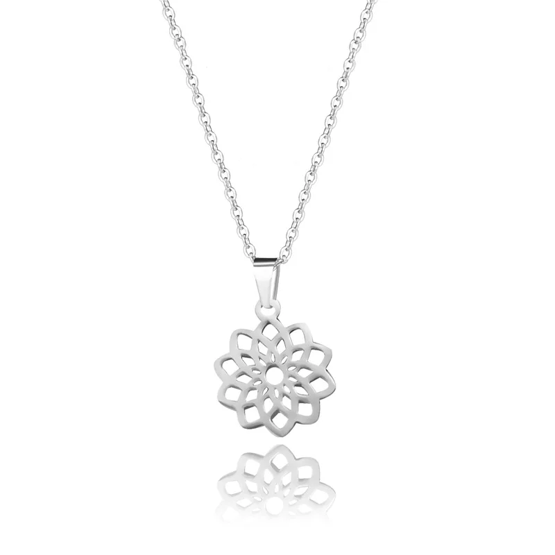 Ожерелье женское в форме цветка лотоса, из нержавеющей стали