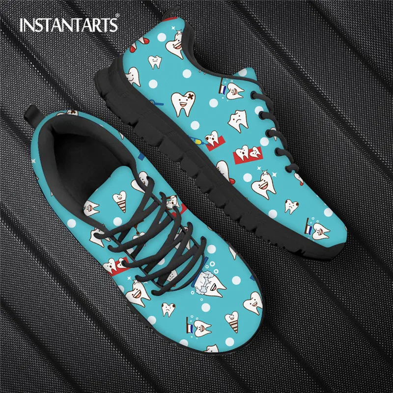 Женские нескользящие кроссовки INSTANTARTS, Повседневная Удобная обувь на плоской подошве, с зубным принтом, для бега