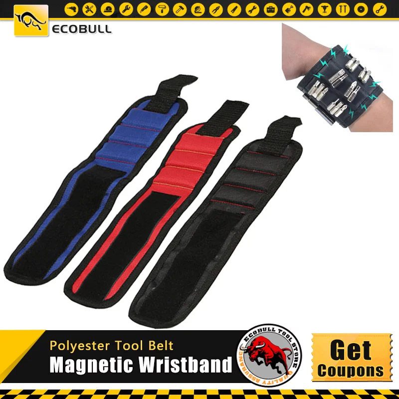 Магнитный браслет из полиэстера, сильные магниты, Портативная сумка, электрик, сумка для инструментов, шурупы, держатель для сверла, ремень для ремонта инструмента
