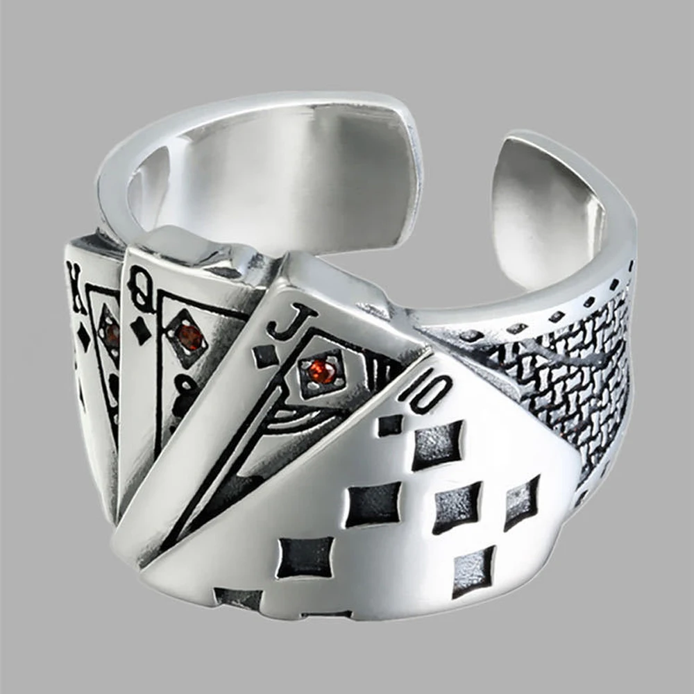 Игральные карты толстые фианиты резные Регулируемые кольца мужские ...