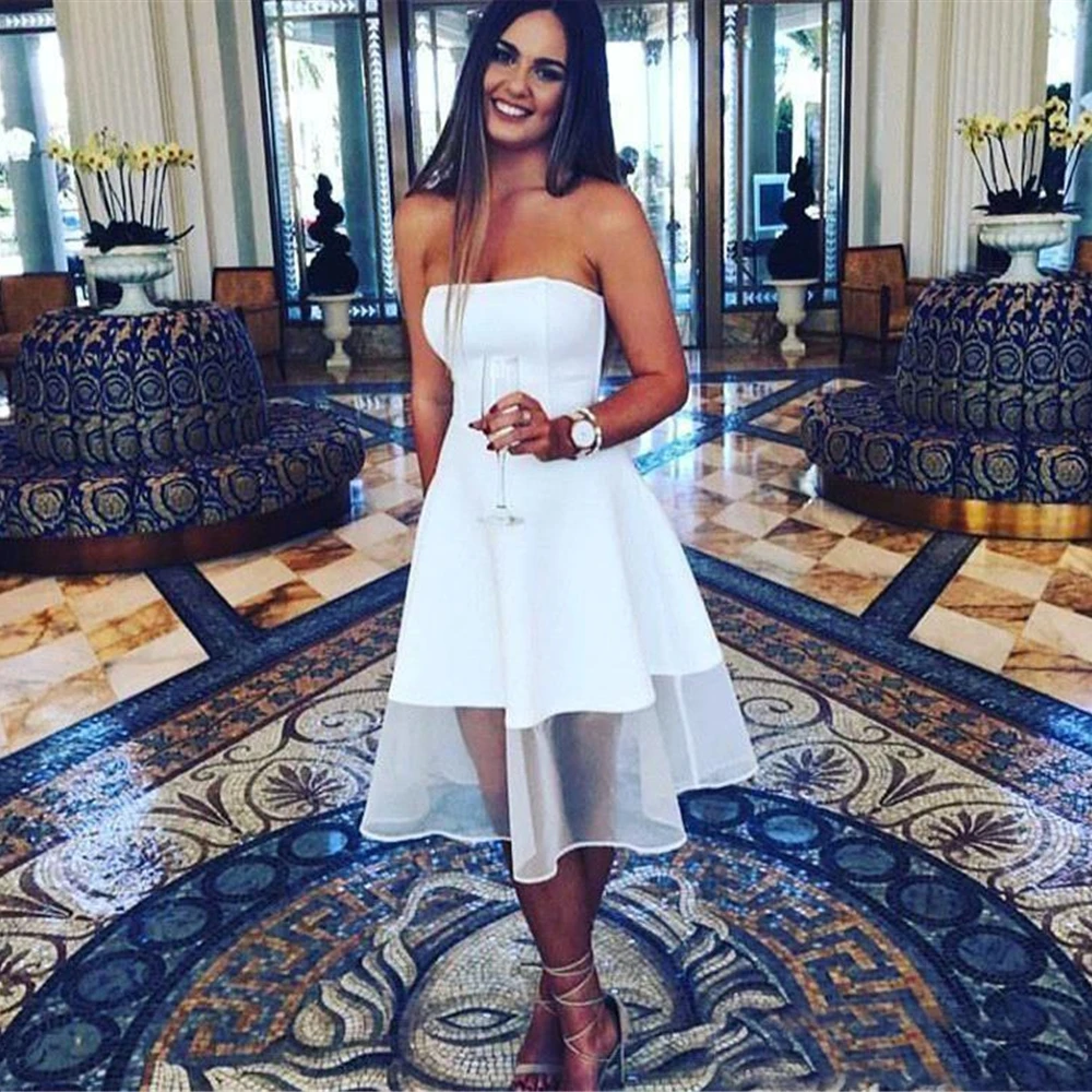 Совок Выпускной Бальные Новое торжественное платье размера плюс с низким вырезом на спине пользовательские короткое белое платье без рукавов до колена Длина Тюлевое платье, платье на выпускной, вечерние платья