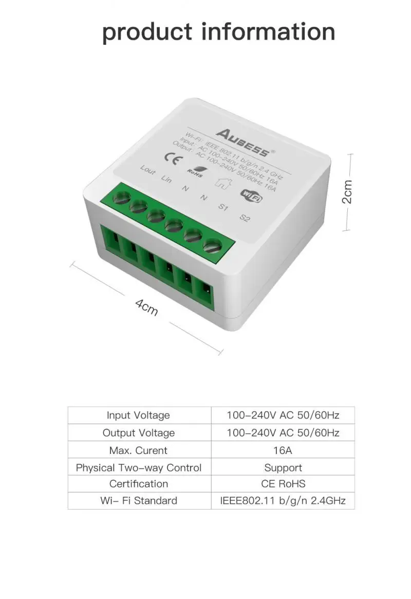 Умный мини-выключатель AUBESS 16 А с поддержкой Wi-Fi