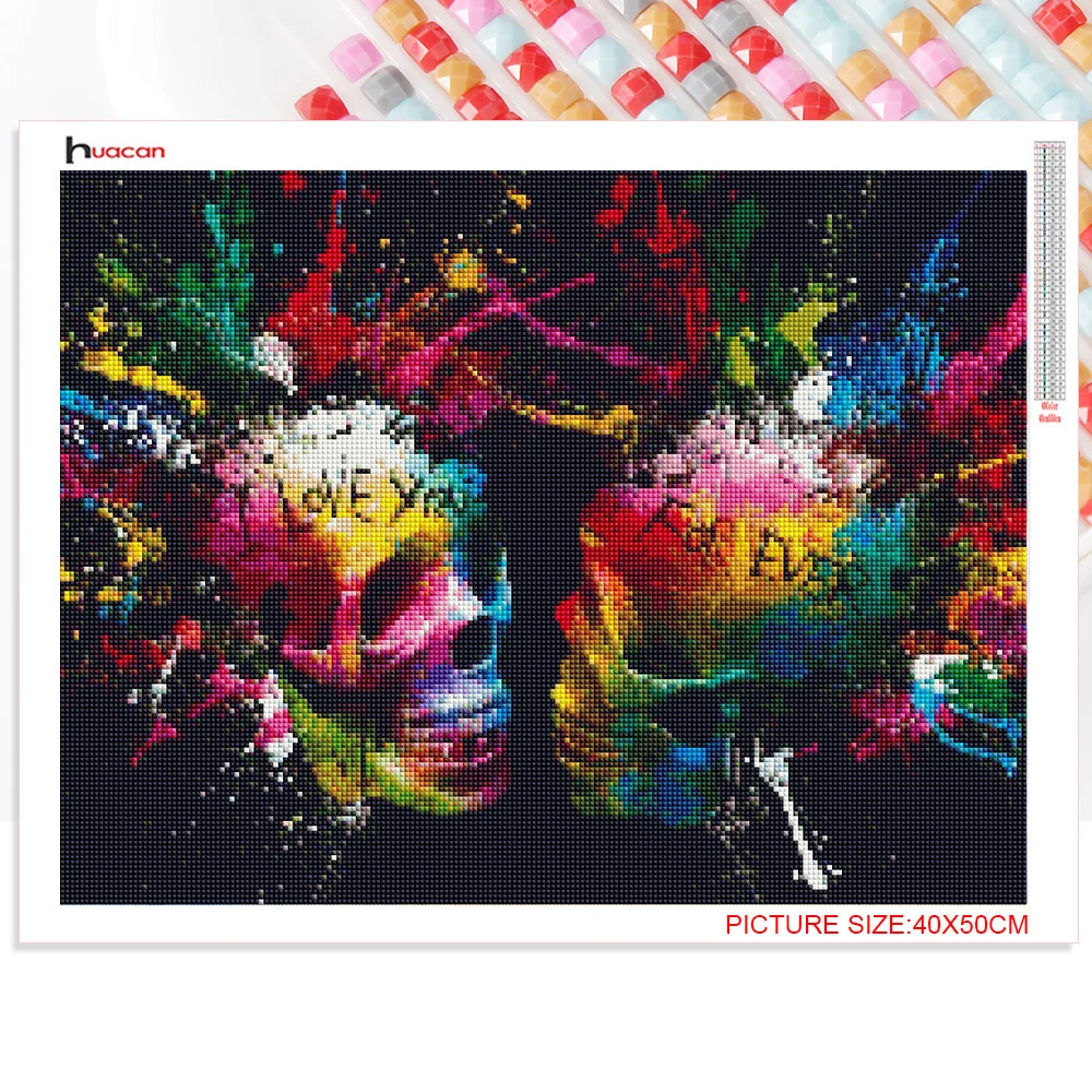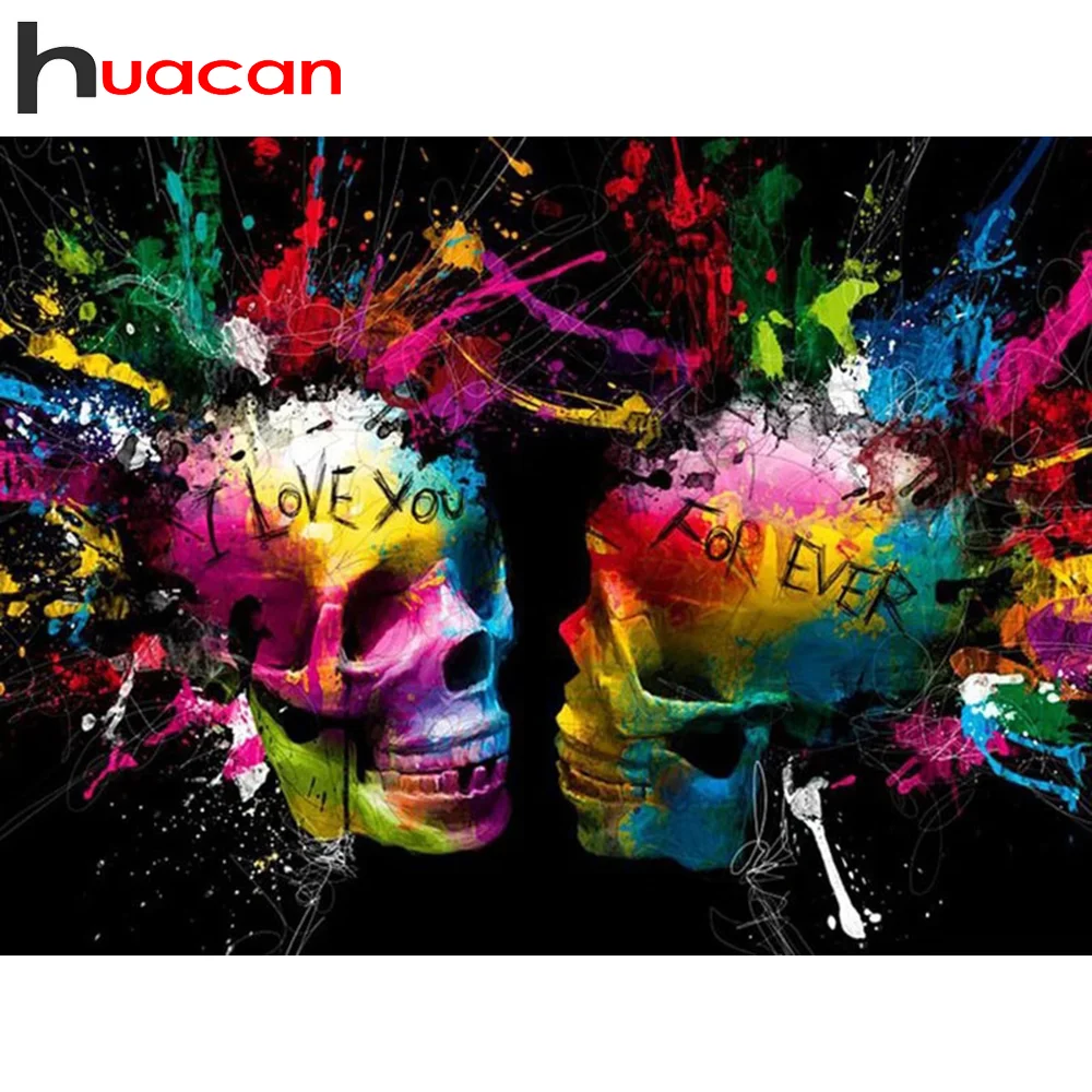 Алмазная 5d картина Huacan, мозаика с черепом для влюбленных пар, полноразмерная вышивка, квадратныйкруглый текст, портретные картины для интерьера