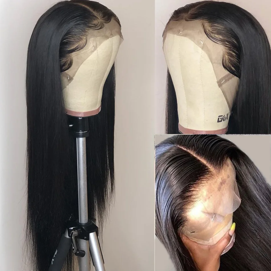 Парики женские прямые из натуральных человеческих волос, 13 х4 дюйма