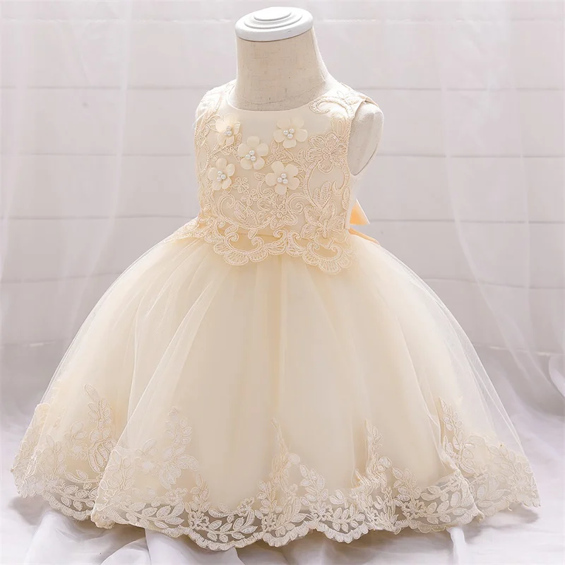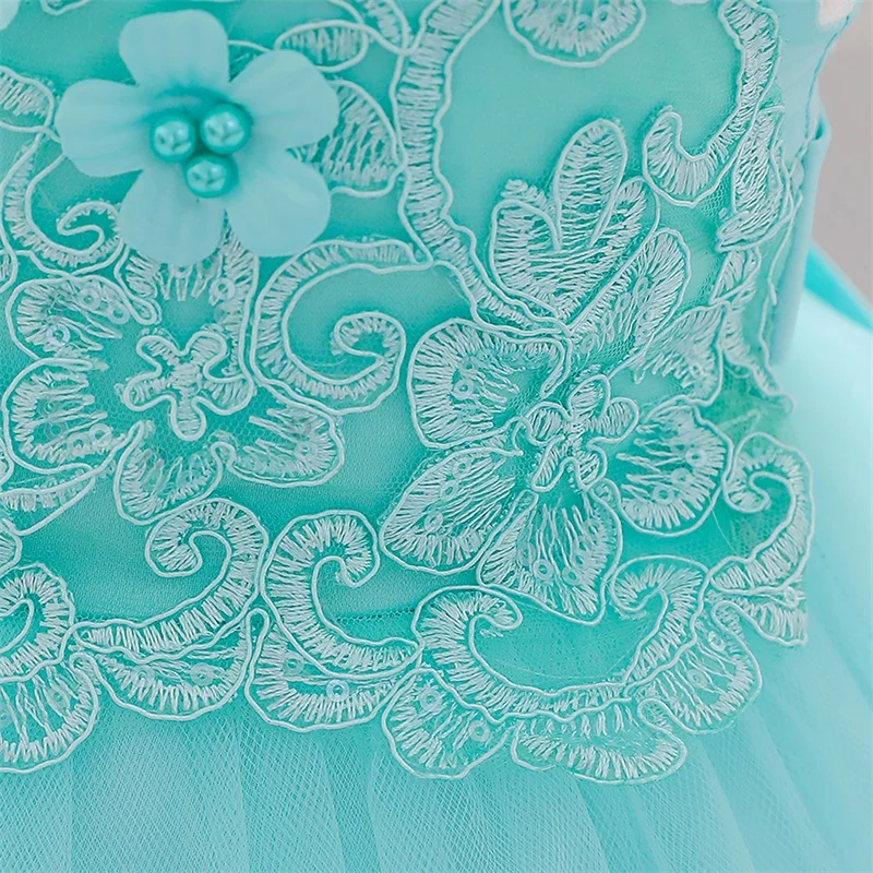 Кружевное платье-пачка с цветочным принтом на крестины, нарядное платье принцессы с бисером, платье для дня рождения, вечерние Детские платье для крещения для маленьких девочек одежда для детей летние платья Vestidos