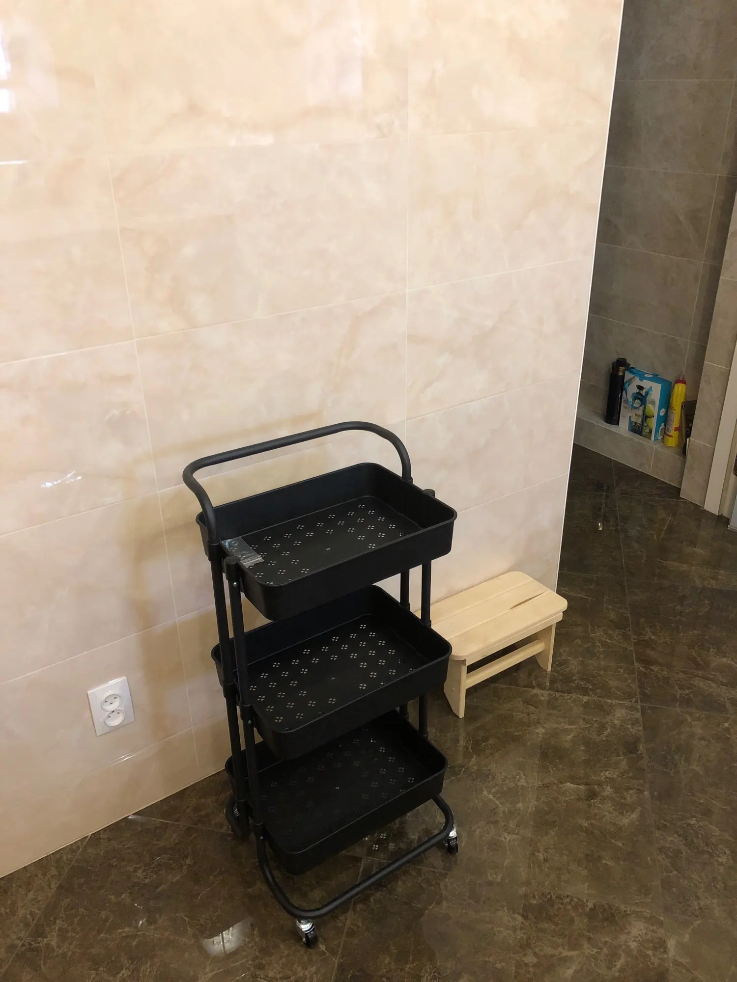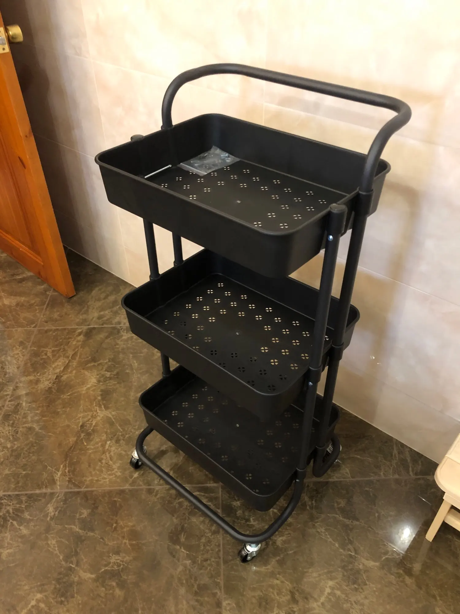 Тележка шикарная, пластик хорошего качества, колёса крутятся отлично, нигде не заедает, не прокручивается, очень устойчивая за счёт конструкции. Собирается мгновенно. Все для сборки в комплекте. Очень довольна. Доставка супер быстрая. Продавца рекомендую!