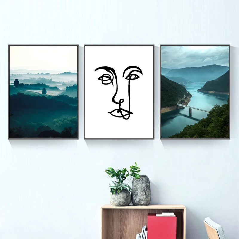 Настенная картина с изображением гор, озера, леса, моста, пейзажа, человеческого лица, Абстрактная Картина на холсте, постеры и принты в скандинавском стиле, домашний декор