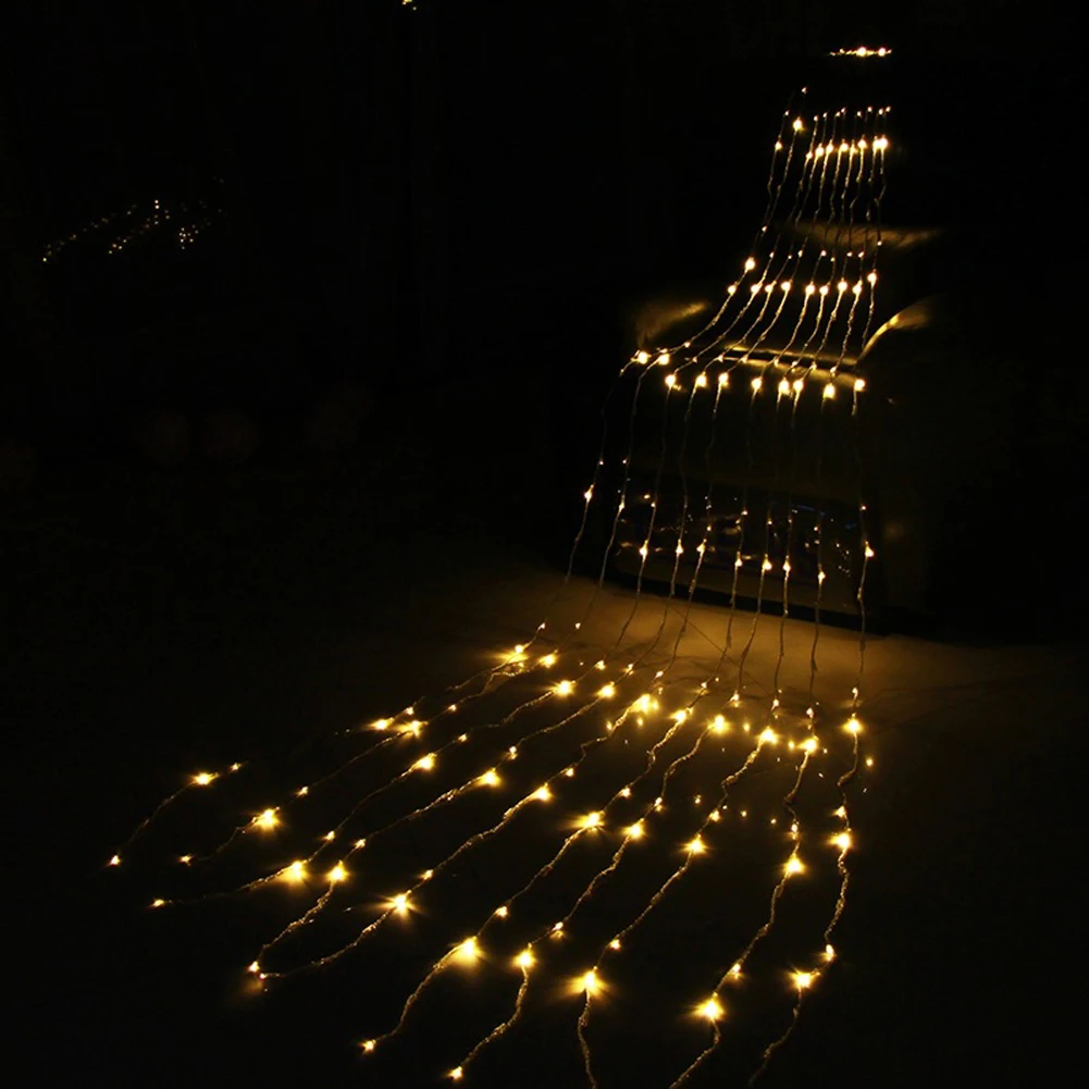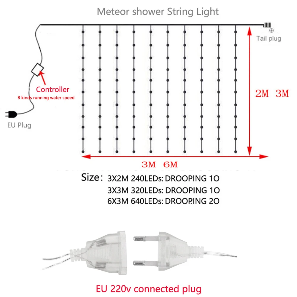 Водопад гирлянды, расхода воды, защищают от снега, для катания на эффект занавес Фея Lighs висит с пересекающимися мигающими звездами гирляндой для вечерние свадебные Рождество патио для дома и улицы декоративная поток воды огни