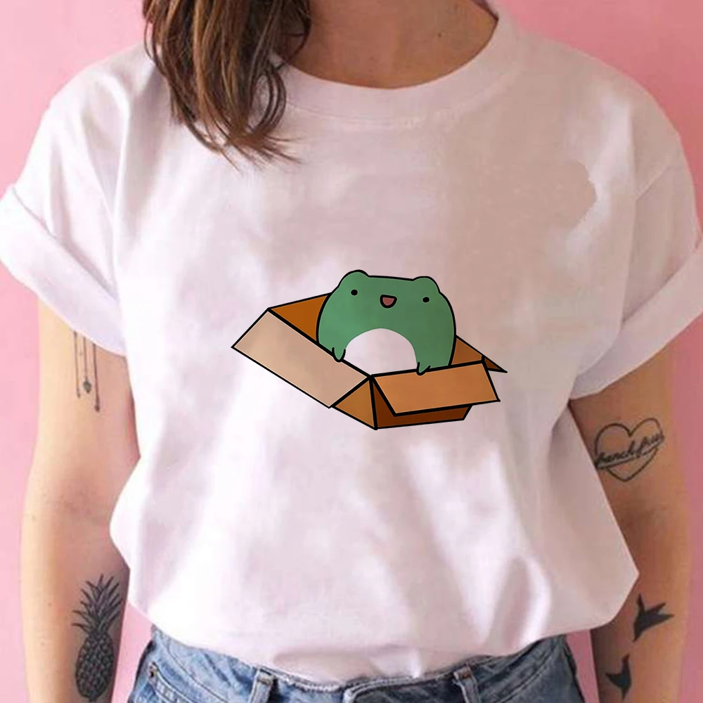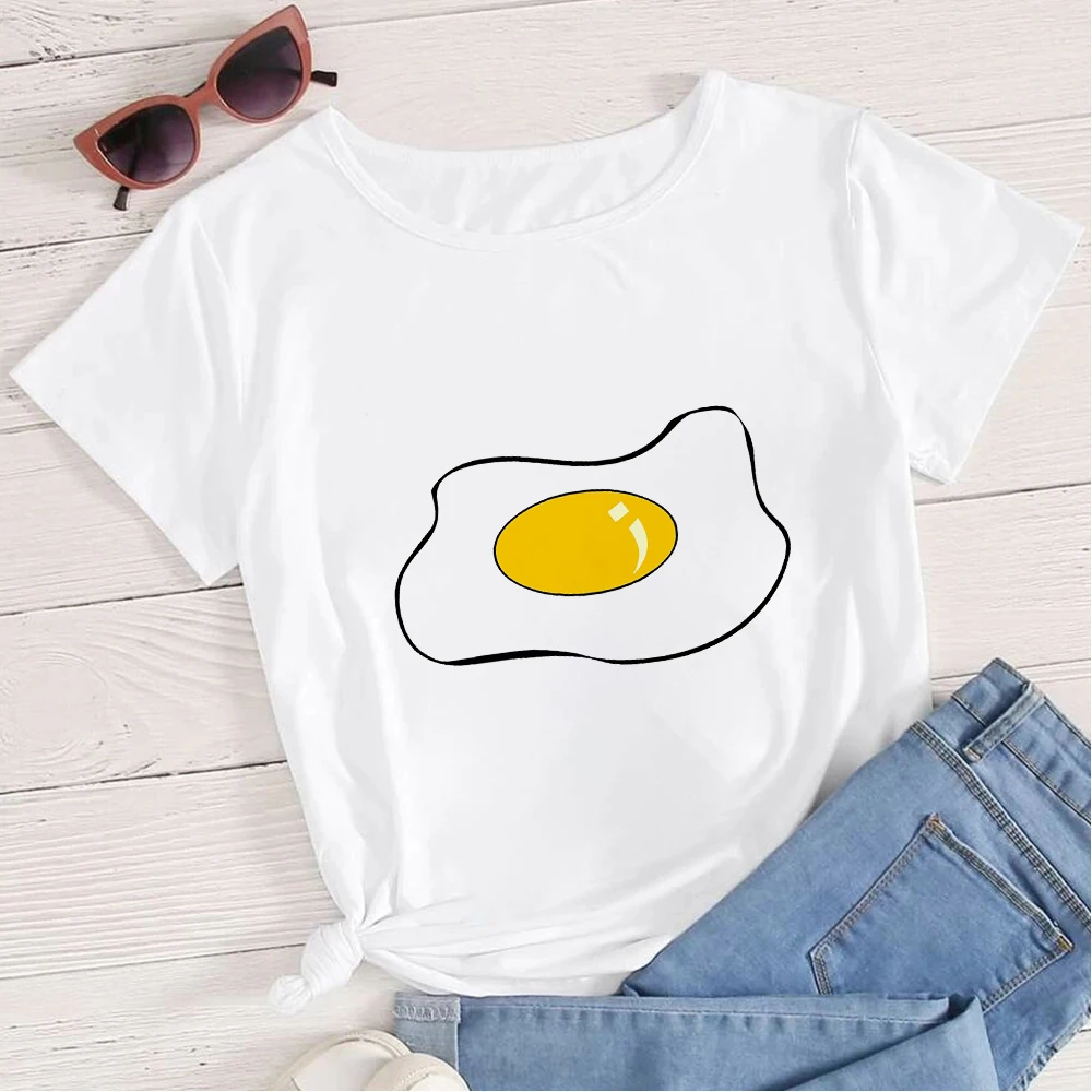 Футболка женская белая, с круглым вырезом и принтом жареных яиц