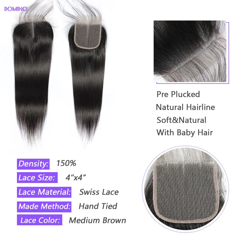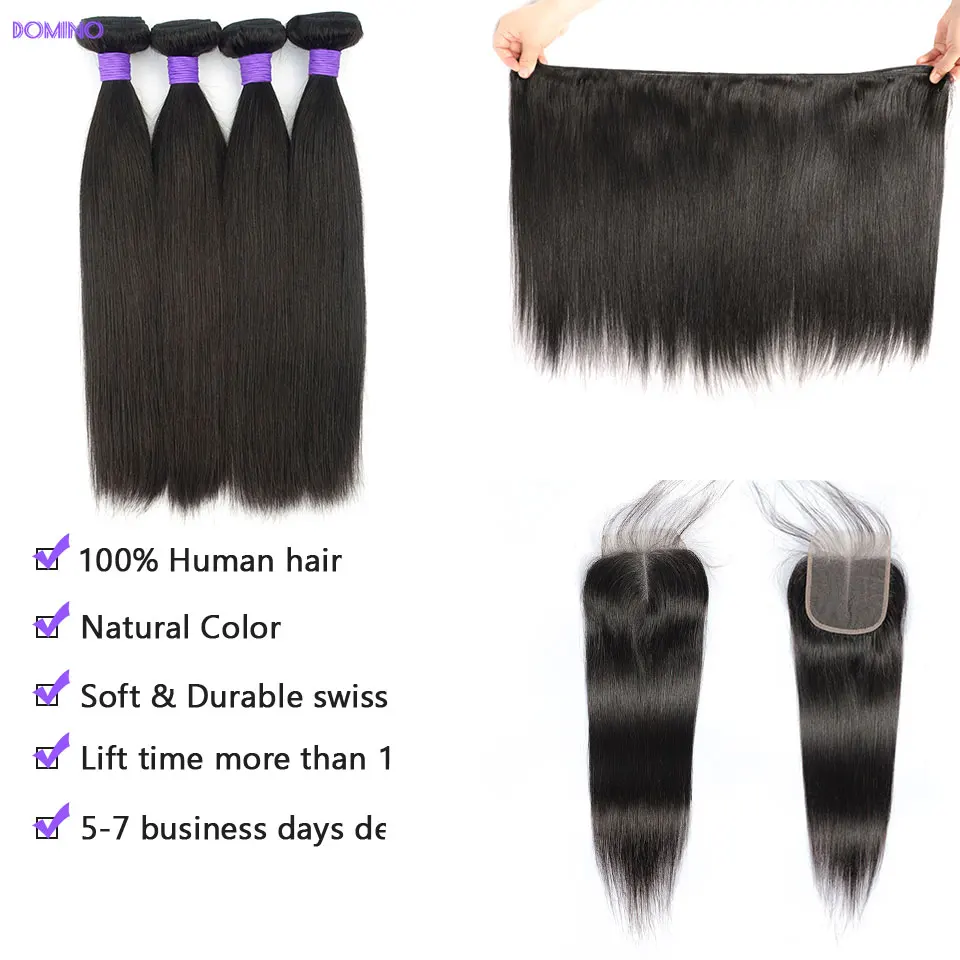 Домино прямые бразильские волосы 3 4 пряди с закрытием человеческих волоскудрявый вьющиеся пряди с закрытием Волосы Remy удлинитель
