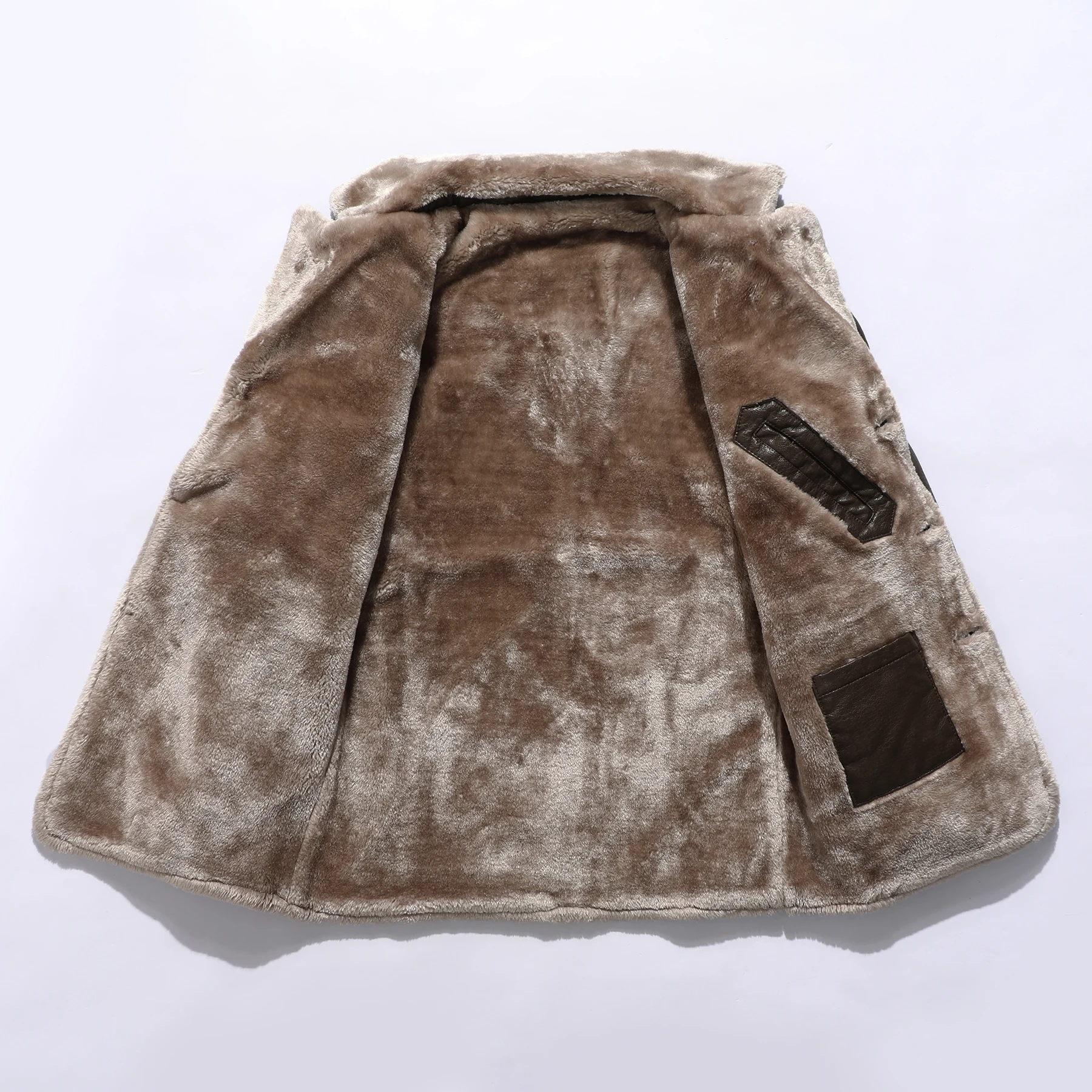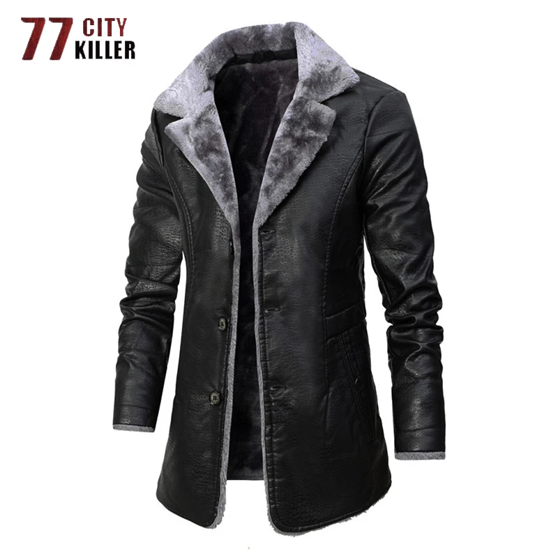 Зимний Бизнес кожаная куртка для мужчин; Подклад из шерсти ветровка на каждый день из искусственной кожи пальто средней длины детская Стиль мужская верхняя одежда Размеры S-4XL