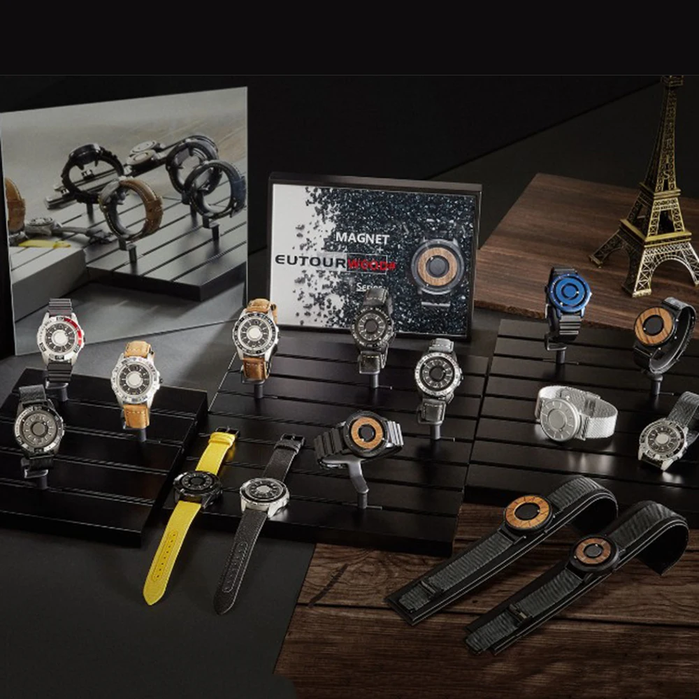 Часы наручные EUTOUR мужские с магнитным шариком, модные кварцевые с желтым парусином, с кожаным ремешком, модные