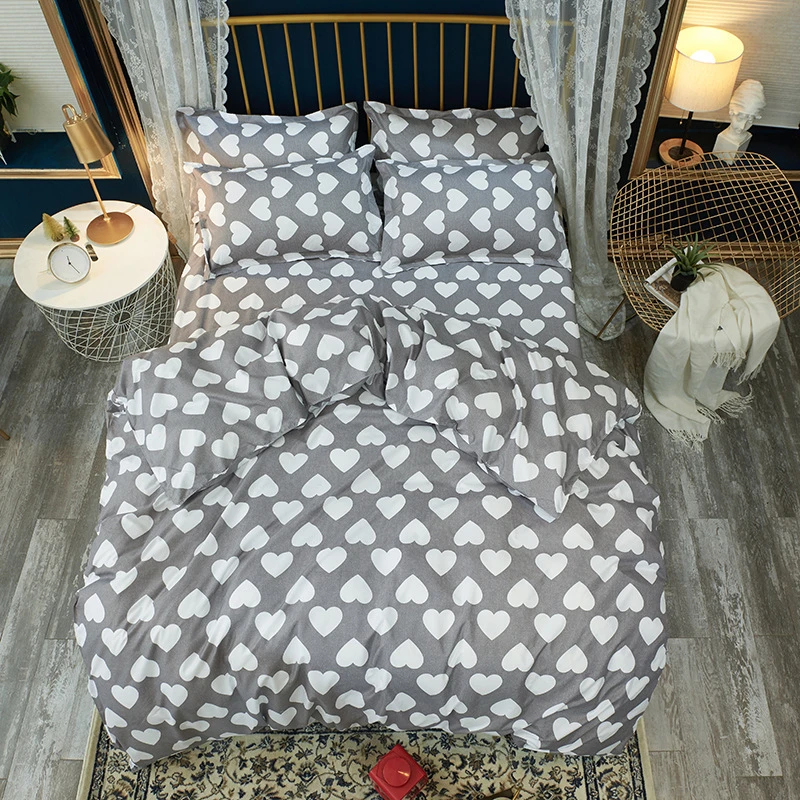Комплект постельного белья, черно-белого цвета, с сердцем, для дево...