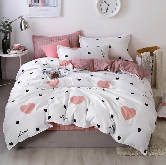 Розовый персиковый узор пододеяльник простыни и наволочки для взрослых и детей комплект постельного белья одеяло комплект постельного белья для маленьких девочек Комплект постельного белья для влюбленных