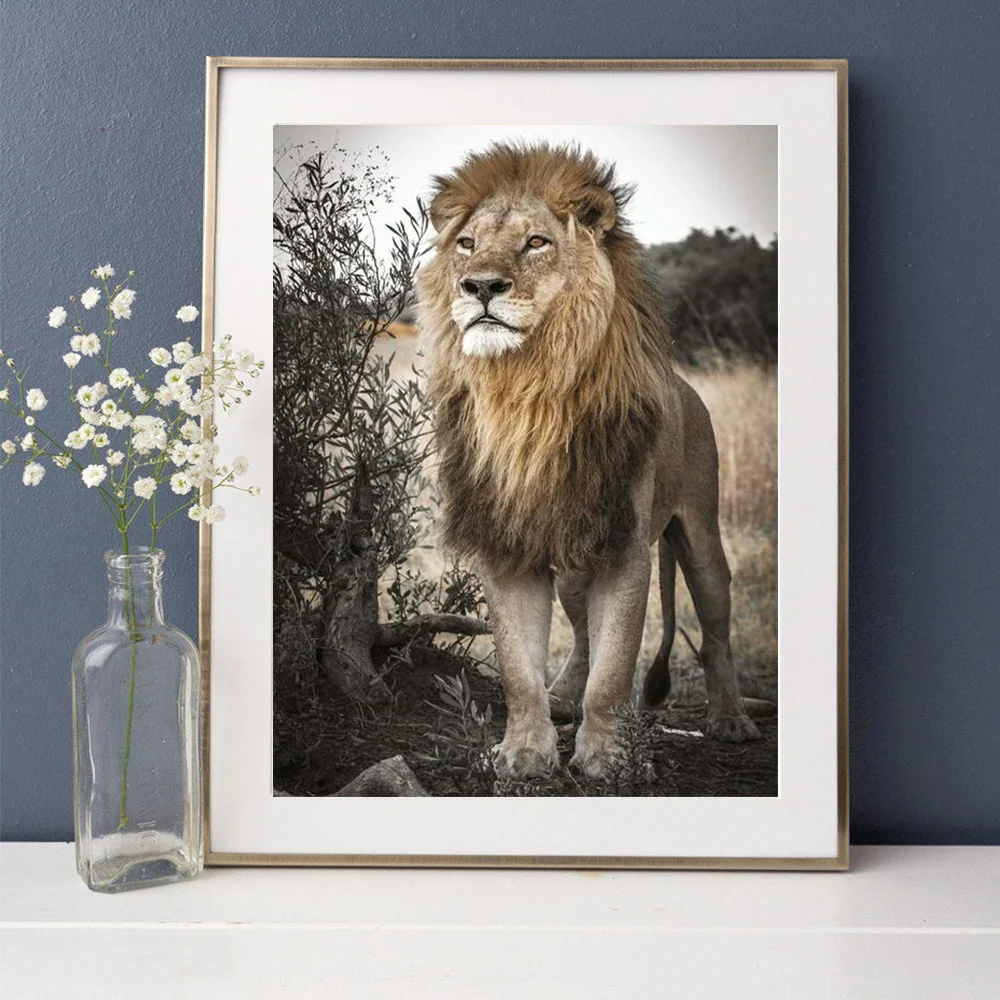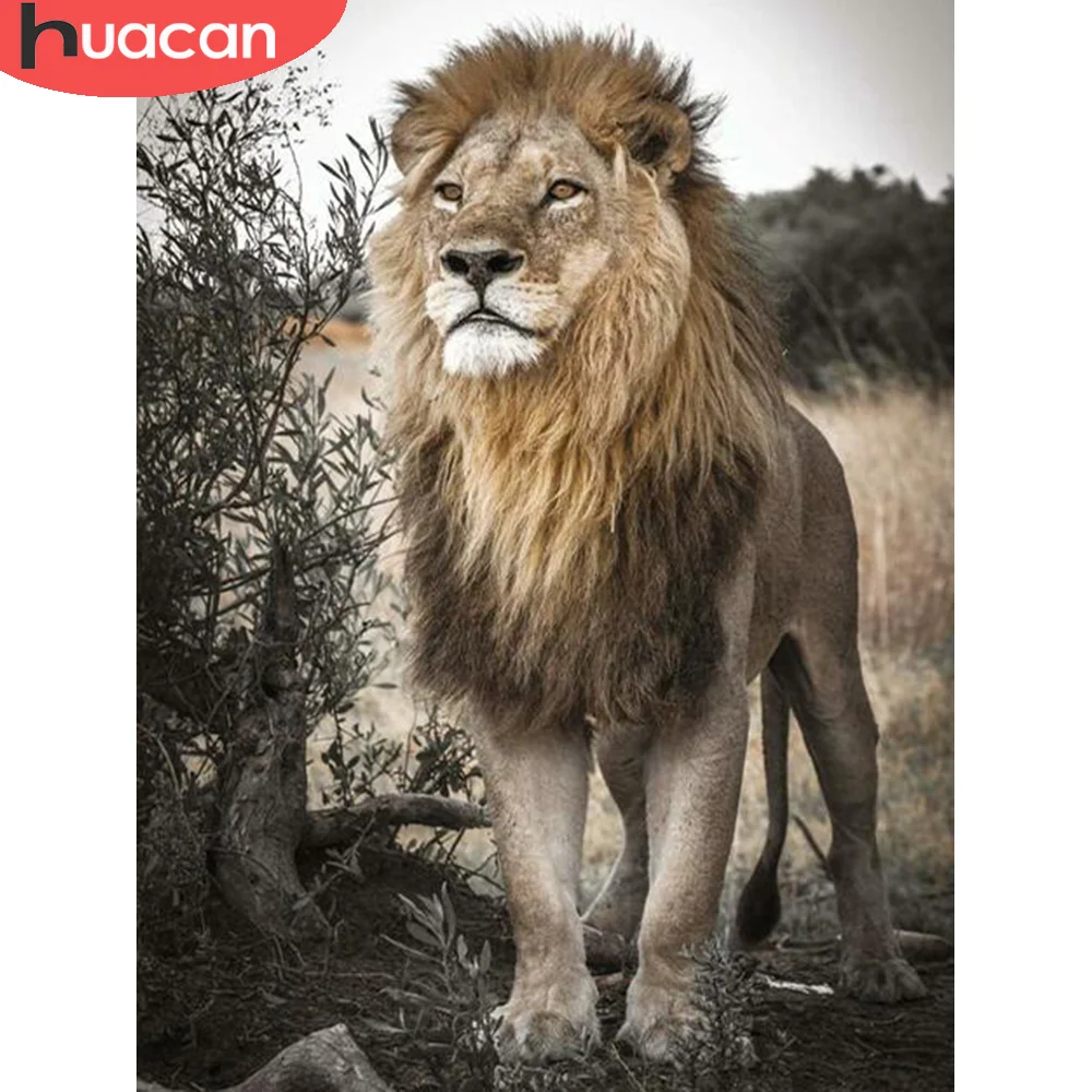 Алмазная вышивка HUACAN, животные, квадратное льняноекруглый Алмазная картина льва с вышивкой натуральная Бриллиантовая арт декор стен