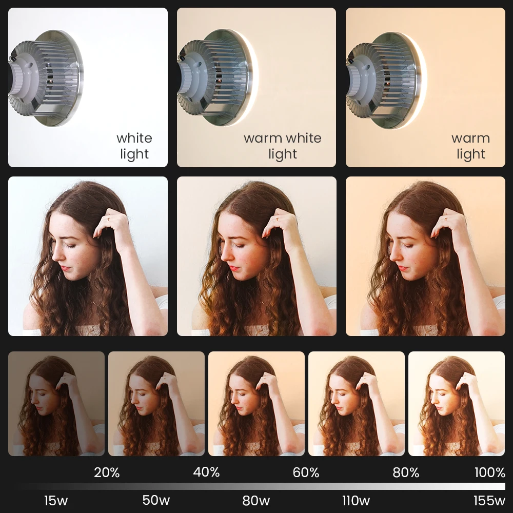 Светодиодсветильник лампа E27 155 Вт с регулируемой яркостью, кольц...