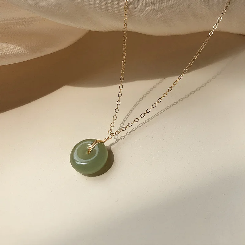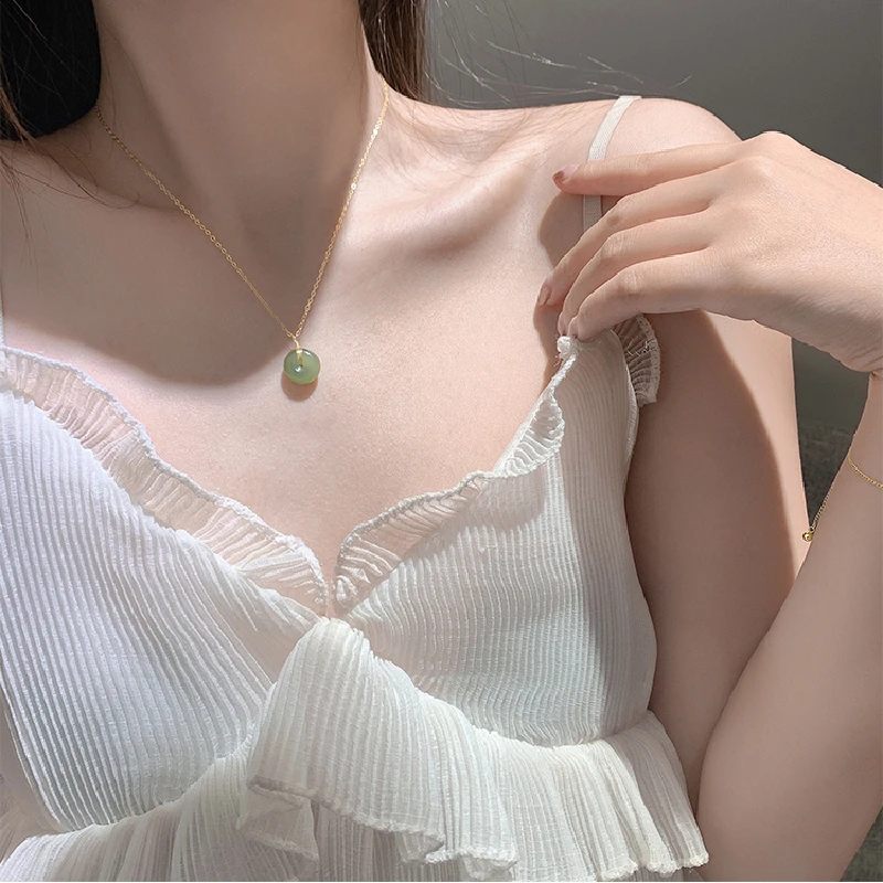 Новинка 925, модное винтажное ожерелье QMCOCO из серебра пробы с круглым зеленым нефритом И ключицами для женщин, ювелирные украшения для дня рождения, подарки