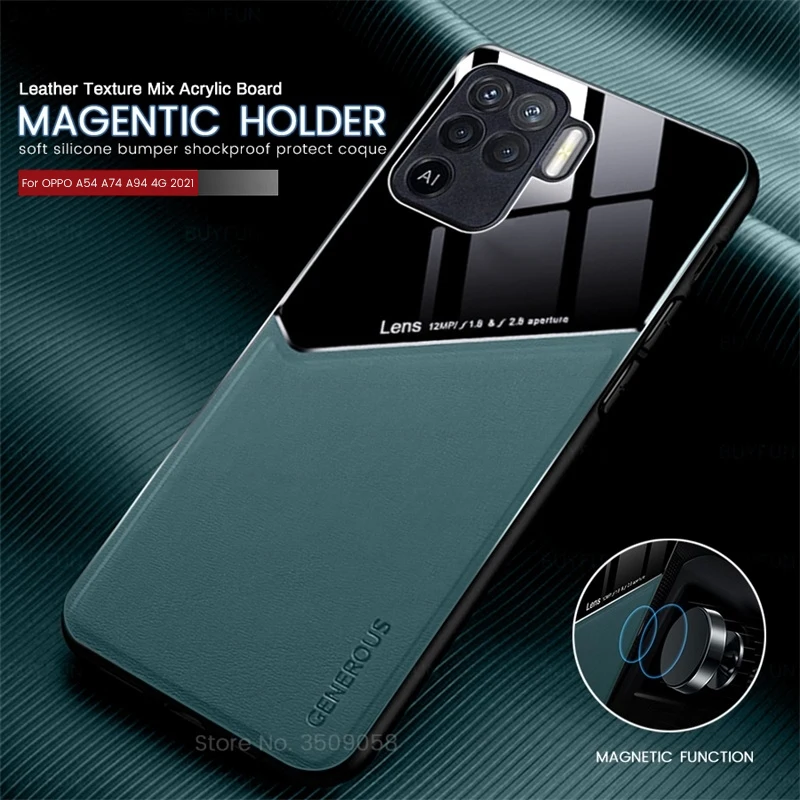 A 54 74 94 4g чехол кожаный чехол текстиль автомобильный магнитный держатель Чехлы для oppo a54 a74 a94 2021 4g Мягкая силиконовая рамка противоударный чехол