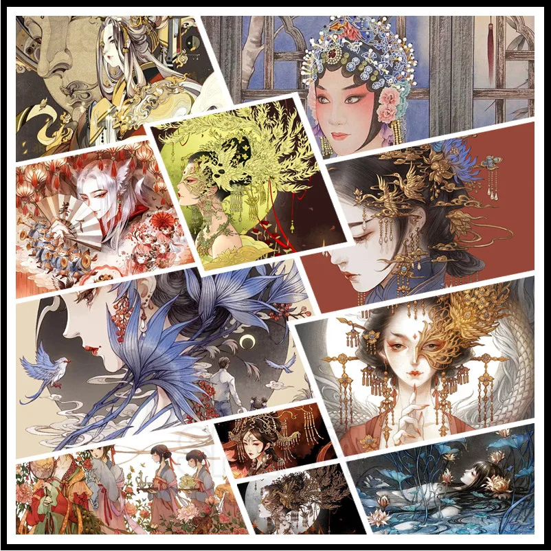 5D алмазная живопись аниме в китайском стиле, креативная ручная роспись, макияж на половину лица, старинная красавица, декор для спальни