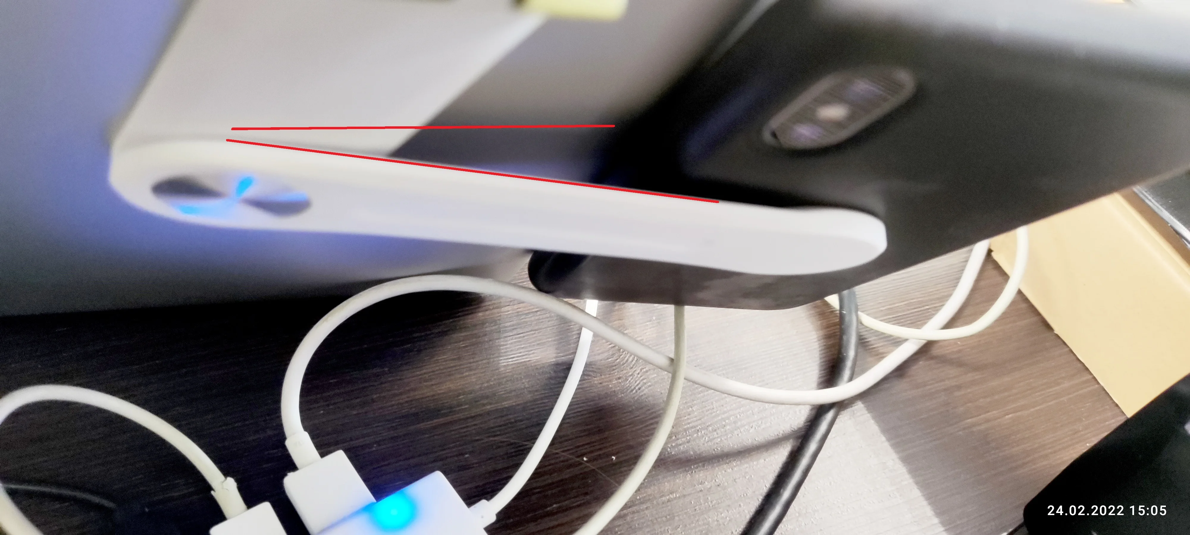 Товар получил достаточно быстро. Устройством недоволен, так как даже при небольшом отклонении экрана от вертикального положения из-за тонкой пластмассы крепления телефон заваливается и есть опасность, что конструкция сломается! Хорошо видно на фотографиях. Хотелось бы, чтобы пластмассовая деталь была твёрже. Проверял на телефонах: iPhone X (на фото) и Xiaomi Poco F3