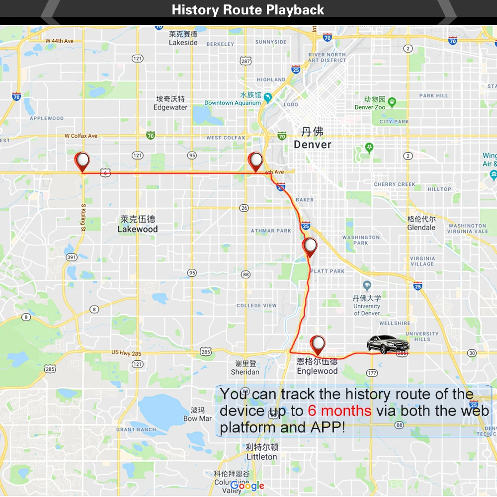 7.Воспроизведение маршрута истории: Вы можете отслеживать маршрут истории устройства до 6 месяцев через веб-платформу и приложение!