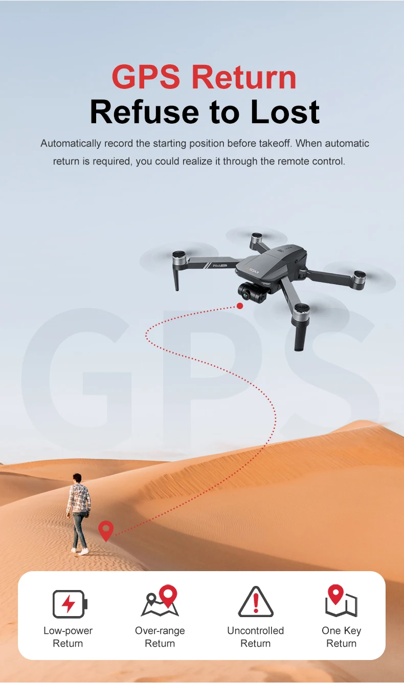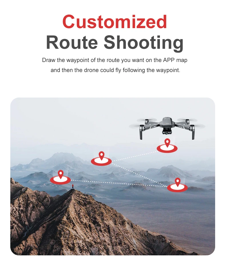 5gwifi, позиционирование GPS/Оптическое позиционирование потока, двойная камера, электрическая камера, регулировка угла вверх и вниз (90 градусов), бесщеточный двигатель, Безголовый режим, умное возвращение, циклический полет, умное наблюдение, полетный путь (трек)