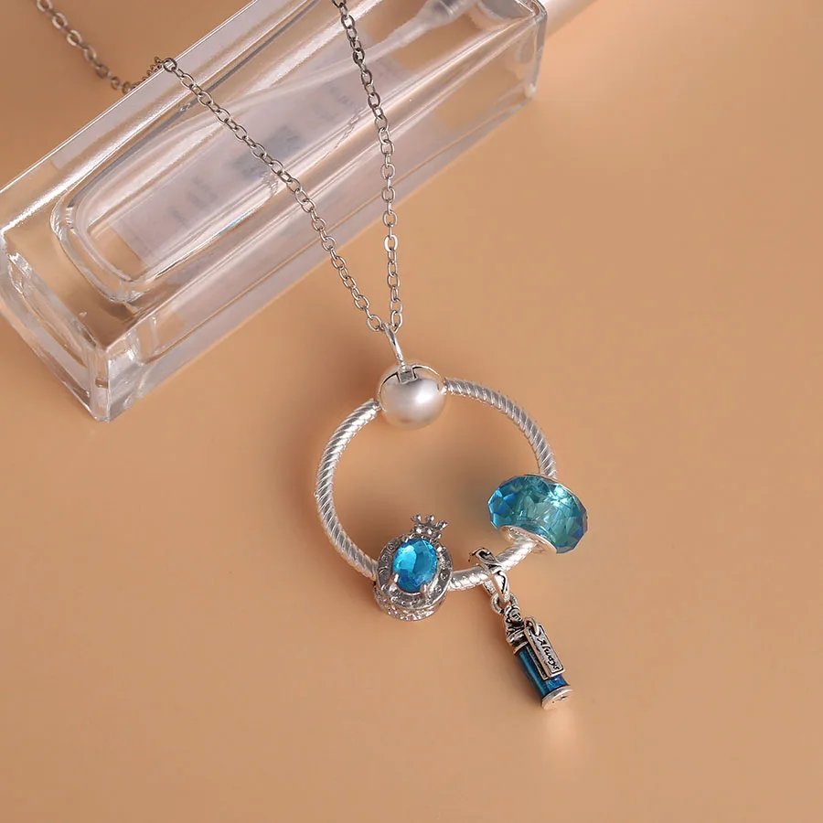 Seialoy модное ожерелье с подвеской из синего кристалла, Хрустальная корона, буква О, бусины, круглое ожерелье с подвеской для женщин и мужчин, оригинальные украшения вечерние Ринок