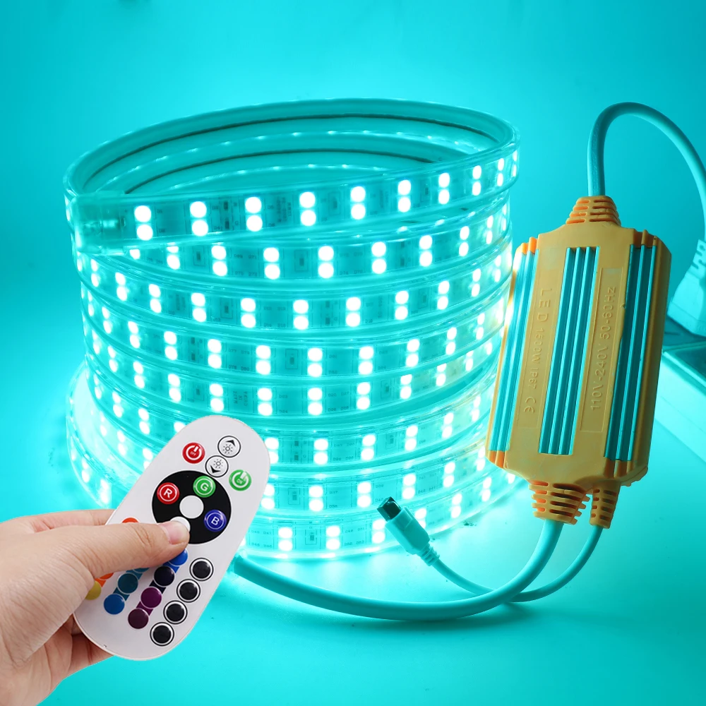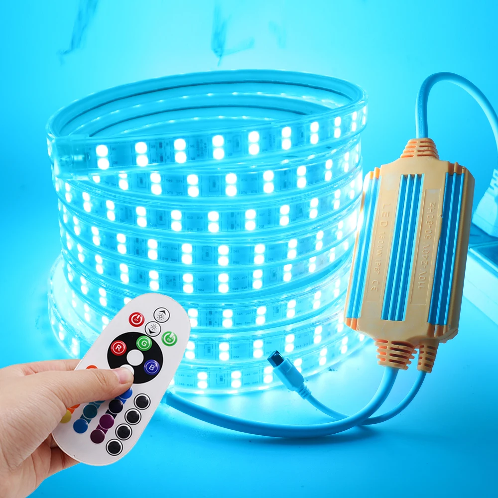 Светодиодная лента 220 в 240 В RGB 5050 120 светодиодовм, водонепроницаемая лента, s-образный шнур с дистанционным управлением, уличная гибкая лента, светодиодсветильник та