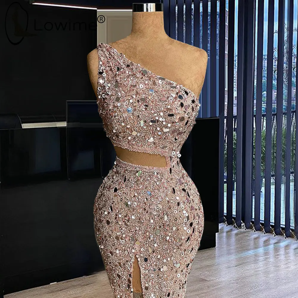 Женское вечернее платье с одним открытым плечом, платье с юбкой годе с высоким разрезом и блестками, лето 2021
