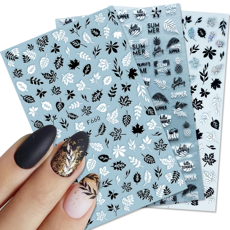3D наклейки для ногтей, черные, белые, золотые, 1 шт., летние листья, дерево, геометрический узор, переводная наклейка, самодельные Украшения для ногтей