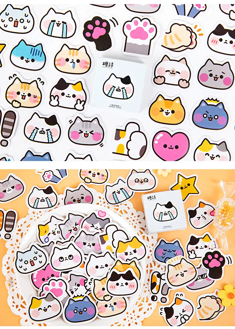 45 шт милый кот Стикеры s виниловые наклейки Животные наклейка в виде котенка Стикеры для бутылок для ноутбука компьютера телефона с изображением из мультфильма сделай сам Дневник в стиле скрапбукинг украшения