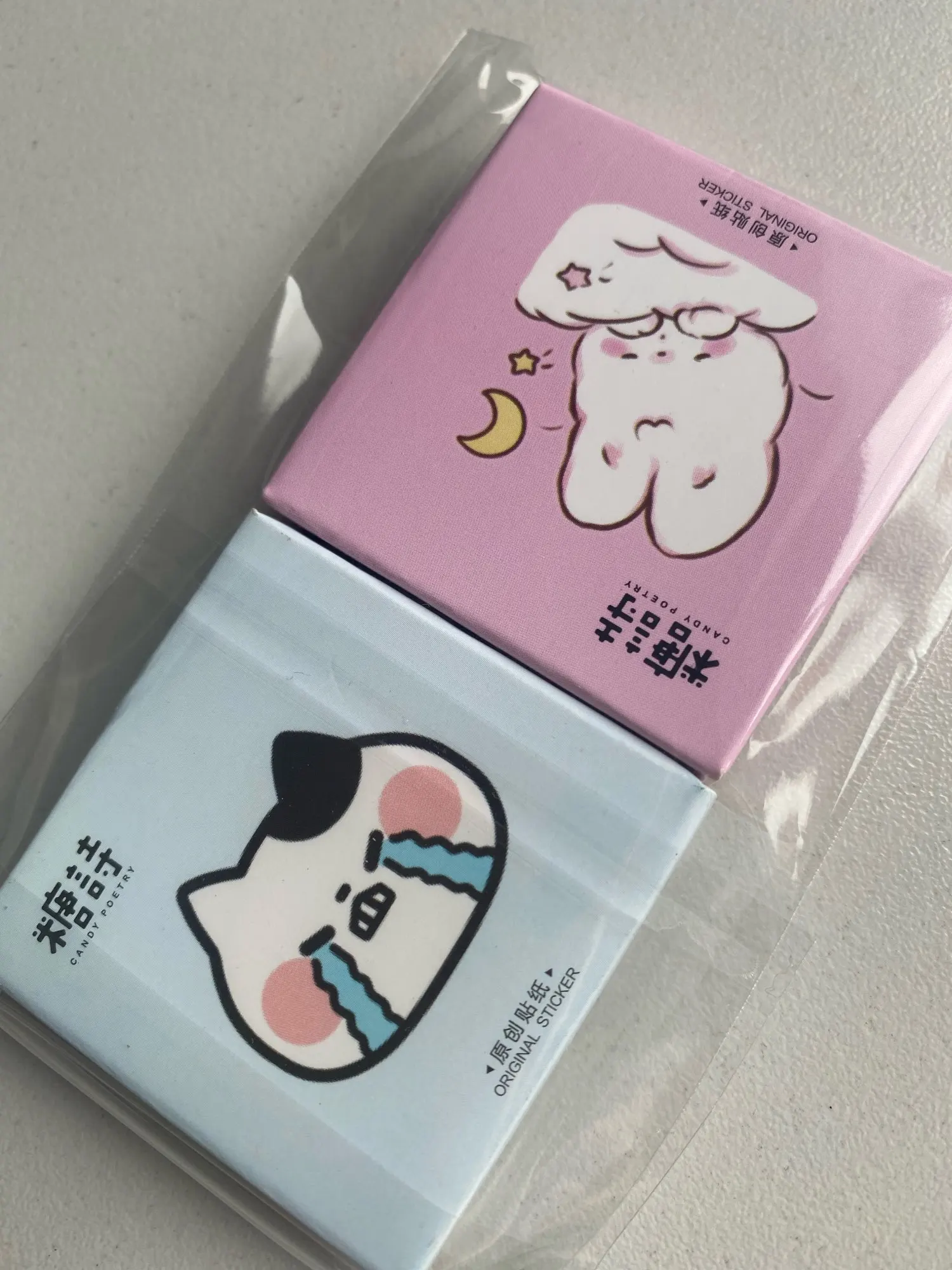 Наклейки приходят в милой голубой коробочке, глянцевые, хорошего качества, попалось 3-4 повторки Безупречно милые наклейки, отличные за свою цену С продавцом не общалась
