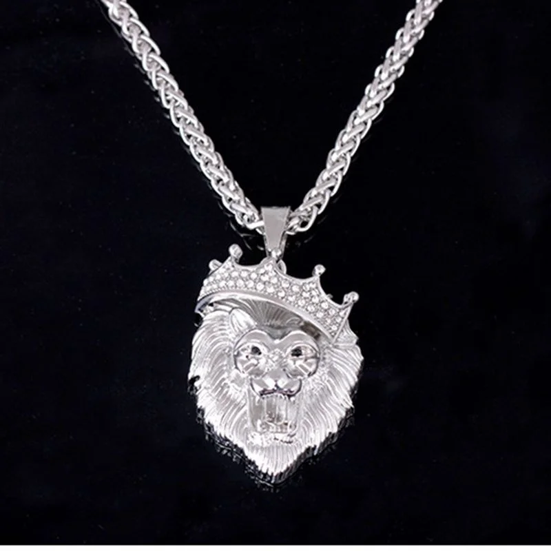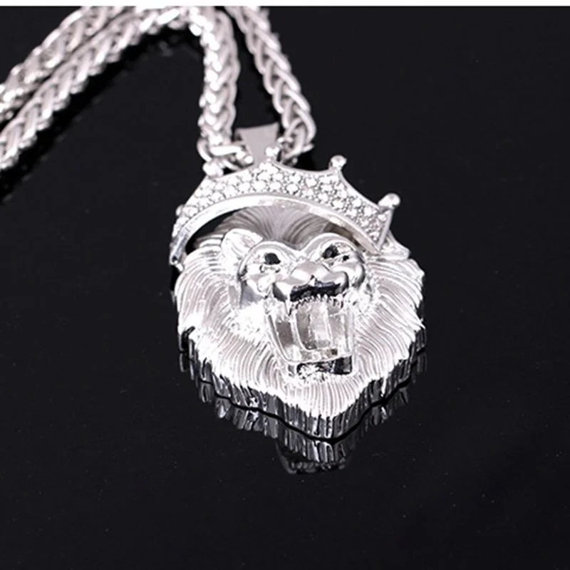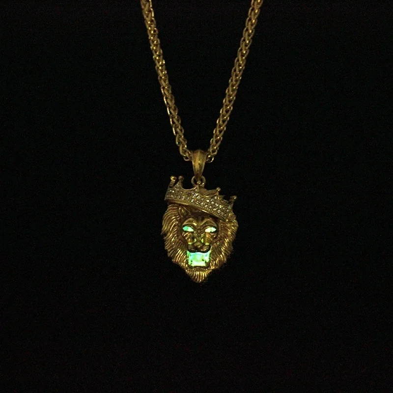 Голова льва в короне мужское ожерелье модные хип-хоп кепки, светящееся ожерелье инкрустированные Хао камень металлическое панк вечерние кулон ожерелье