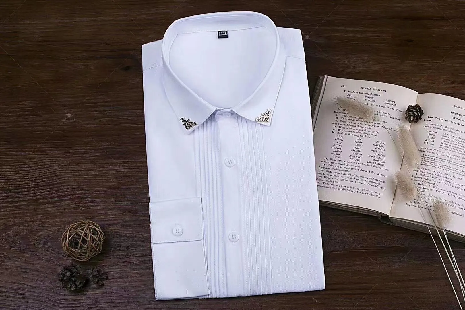 Рубашка мужская, черная, облегающая, со складками, большого размера, 2021