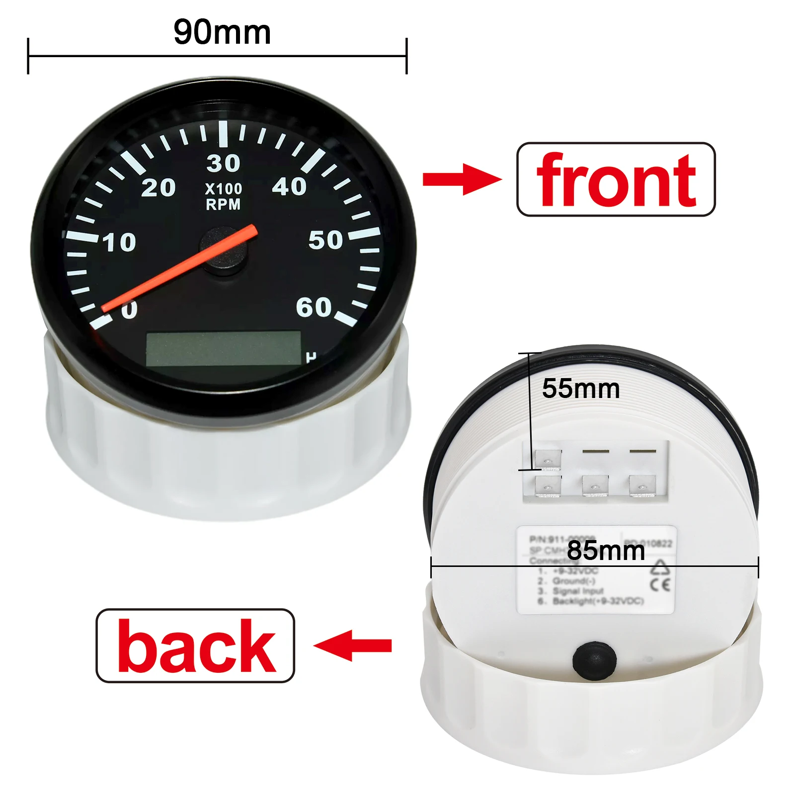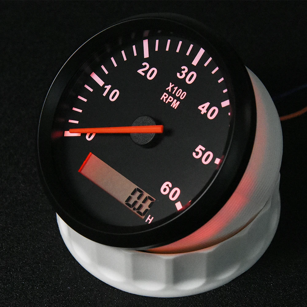 Тахометр для лодки, 40006000 оборотов в минуту, датчик морского тахометра, ЖК-дисплей, песочный метр, 12 В24 В, 85 мм, Автомобильный Тахометр с красной подсветкой