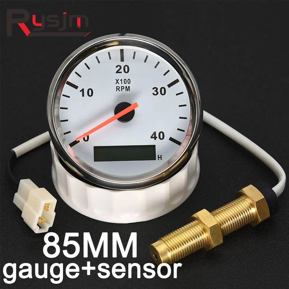 4000/6000 об/мин лодочный Тахометр + датчик, Морской Тахометр, датчик, ЖК-часы, 12 В/24 В, 85 мм, Автомобильный Тахометр с красной подсветкой